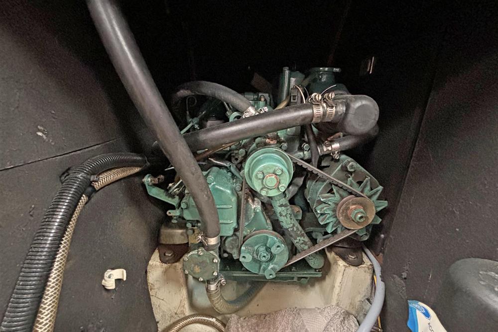 1993 Volvo Penta MD2020, three cylinder, 19hp marine diesel engine located under companionway. Fresh water cooled via heat exchanger. New cooling water strainer fitted 2025. Saildrive to fixed blade propeller. Single lever engine control. New 81 litre stainless steel fuel tank (new 2024). Engine serviced and winterised in Autumn 2025. The saildrive diaphragm was replaced in 2019.