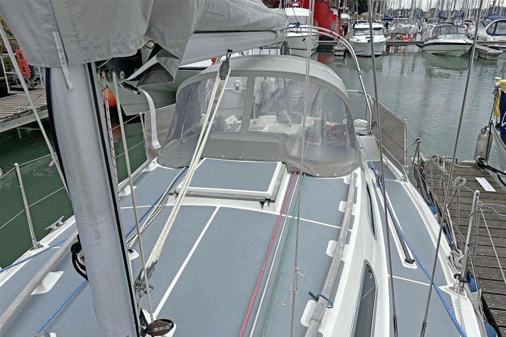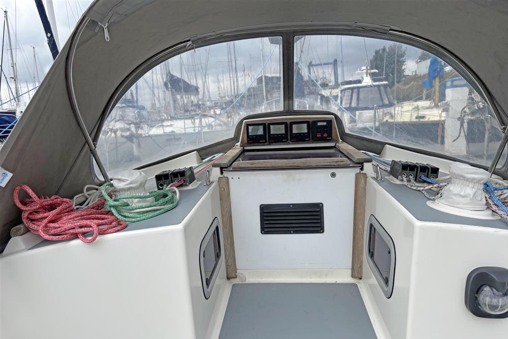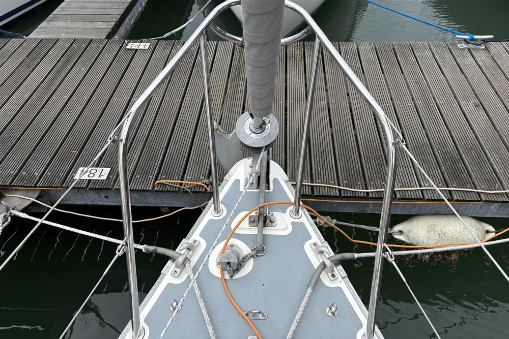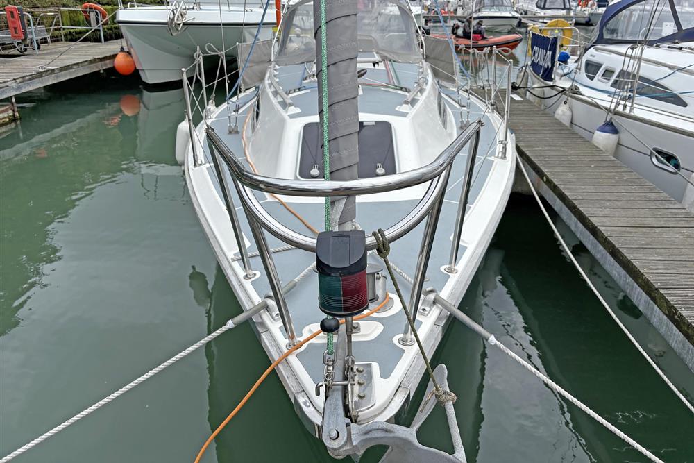 Fractional Bermudan sloop rig. Silver anodised aluminium mast and boom by Kemp Masts, 1993. Stainless steel standing rigging (new 2023). Terylene running rigging (new 2023). Slab reefing to mainsail with stack pack and lazyjacks. Rotostay headsail furling system (serviced 2023). Mainsheet traveller. Two Lewmar 30 self-tailing primary winches. Two Lewmar 7 coachroof control line winches.