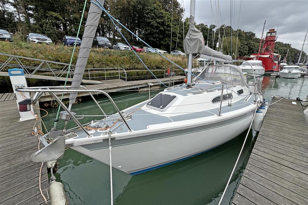The Westerly Regatta 290 was a modernised version of the Merlin, with a sugar scoop transom, fractional rig and much uprated and redesigned interior woodwork and layout. This example is presented in excellent condition and ready to go. She benefits from plenty of upgrades in recent years including new standing and running rigging in 2023, new stainless steel fuel tank in 2024 and a new mainsail in 2024. Her head linings were also replaced in 2024.