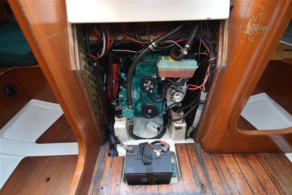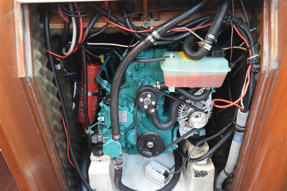 Located beneath companionway, Volvo Penta MD2030 (new 2001) 29hp marine diesel engine. Freshwater cooled via heat exchanger. Single lever control with electric start. Plastic 100L fuel tank with an approx. cruising range of 40hrs at 5kts. The engine has been regularly serviced and well-maintained during current ownership, with the last service carried out in July 2023. Exact engine hours are unknown but are believed to be around 3,500hrs total run time.