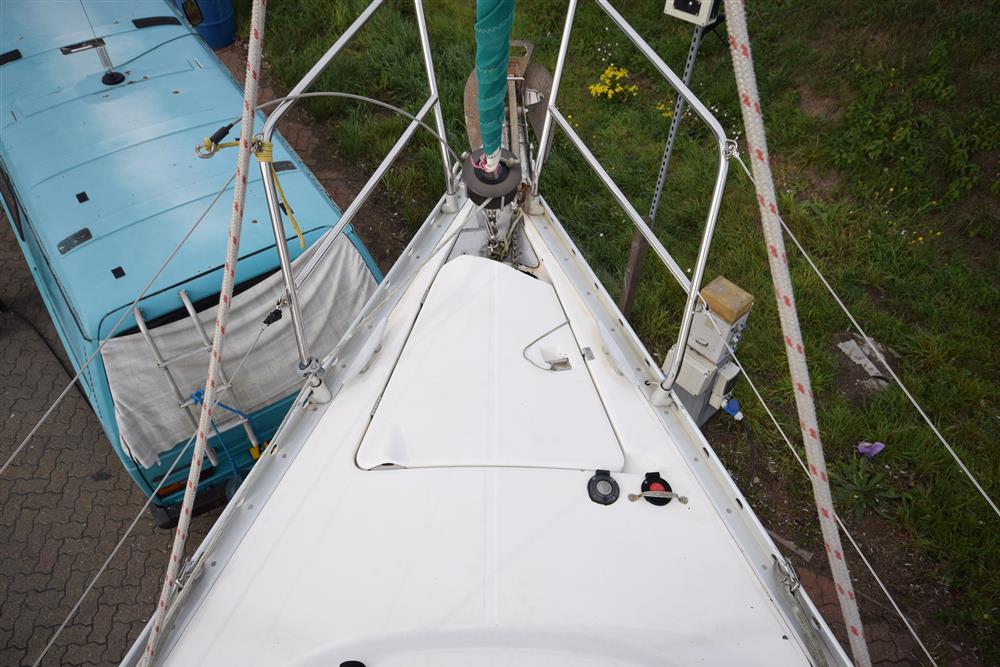 Masthead rigged sloop. Aluminium mast and boom. Stainless steel standing rigging (new 2020). Terylene running rigging (replaced as required). Slab reefing mainsail with lazy jacks and stackpack. Rotostay headsail furling system. 2 x Lewmar 44 self-tailing sheet/halyard winches on coachroof. Lines led aft to Spinlock clutches.