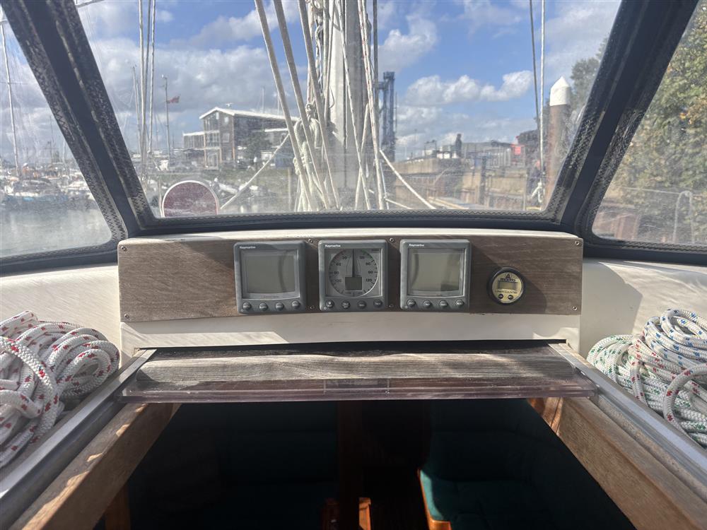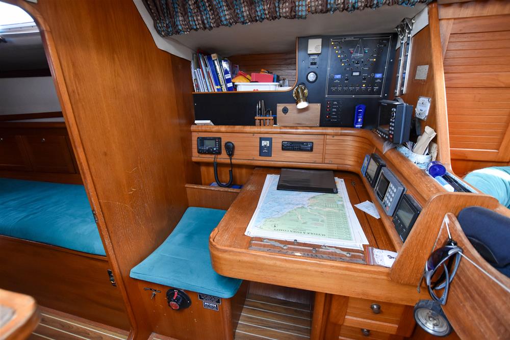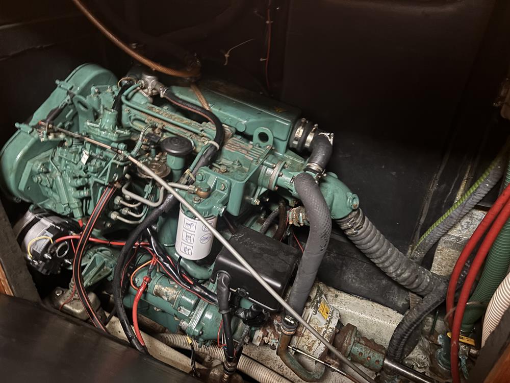 Located under the cockpit sole in a sound proof and ventilated engine bay is the Volvo Penta MD22A. 60hp, four cylinders, fresh water cooled via a heat exchanger. Shaft drive to a Bruntons feathering three bladed propeller. Electric start. Single lever controls. 180 litre stainless-steel fuel tank. Annually serviced (Last serviced September 2025).