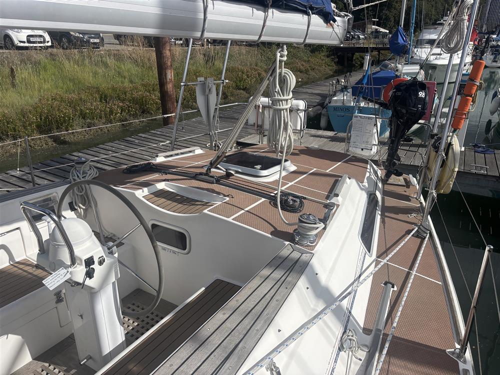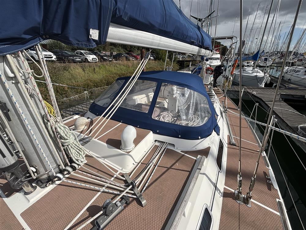 Masthead rigged Bermudan cutter. Anodised aluminium mast and boom by Kemp. Stainless steel standing rigging (2013). Terylene running rigging (renewed as required). Slab reefed mainsail. Twin Harken headsail furling systems. Lines led aft to cockpit. Two Lewmar 50 self-tailing sheet winches. Two Lewmar 44 self-tailing sheet winches. Two Lewmar 30 self-tailing winches. Mast mounted spinnaker pole.