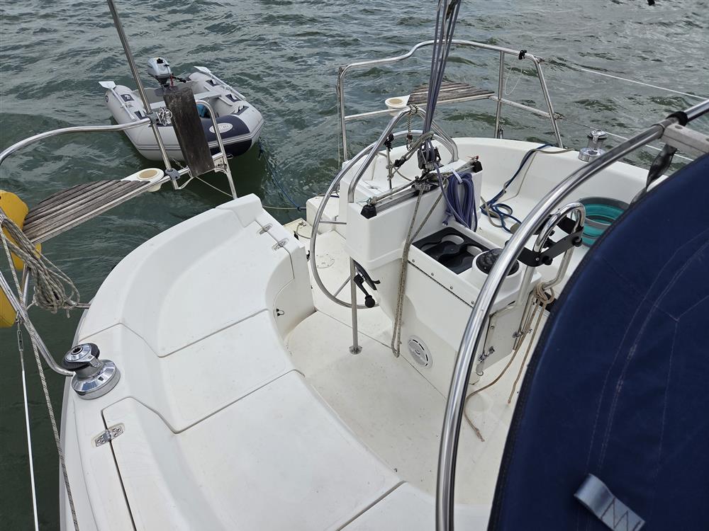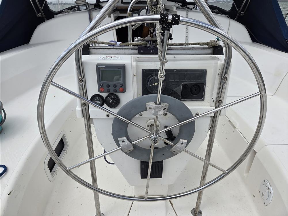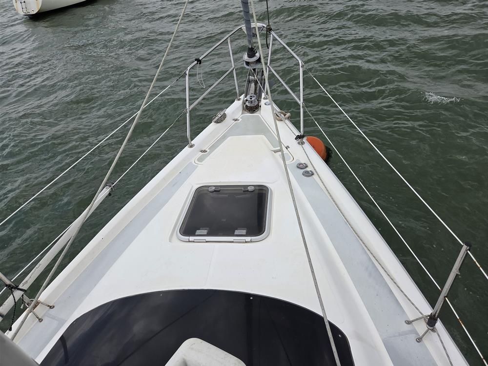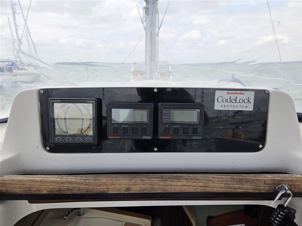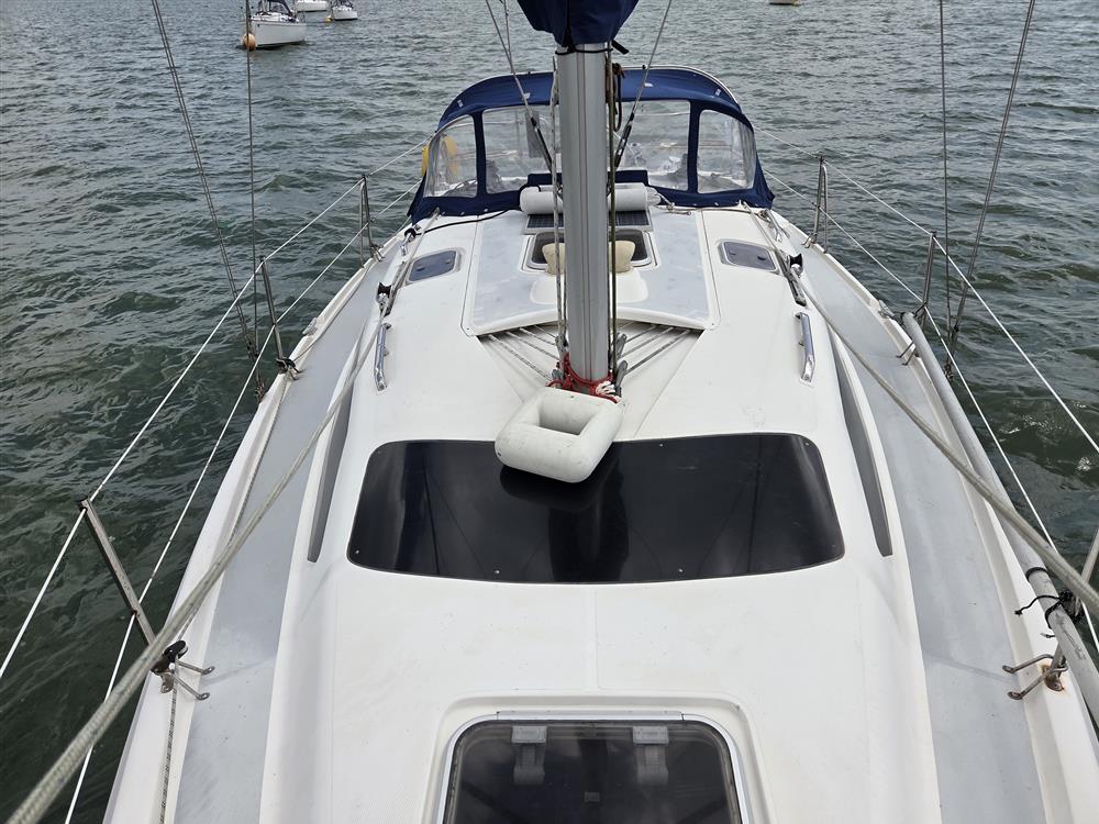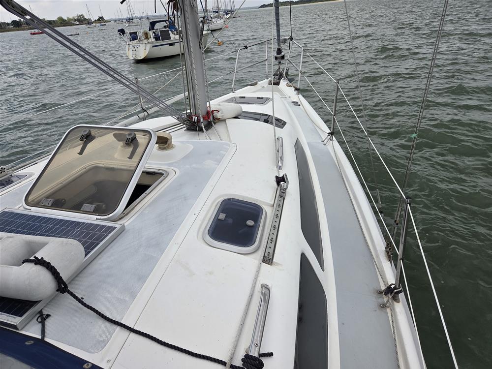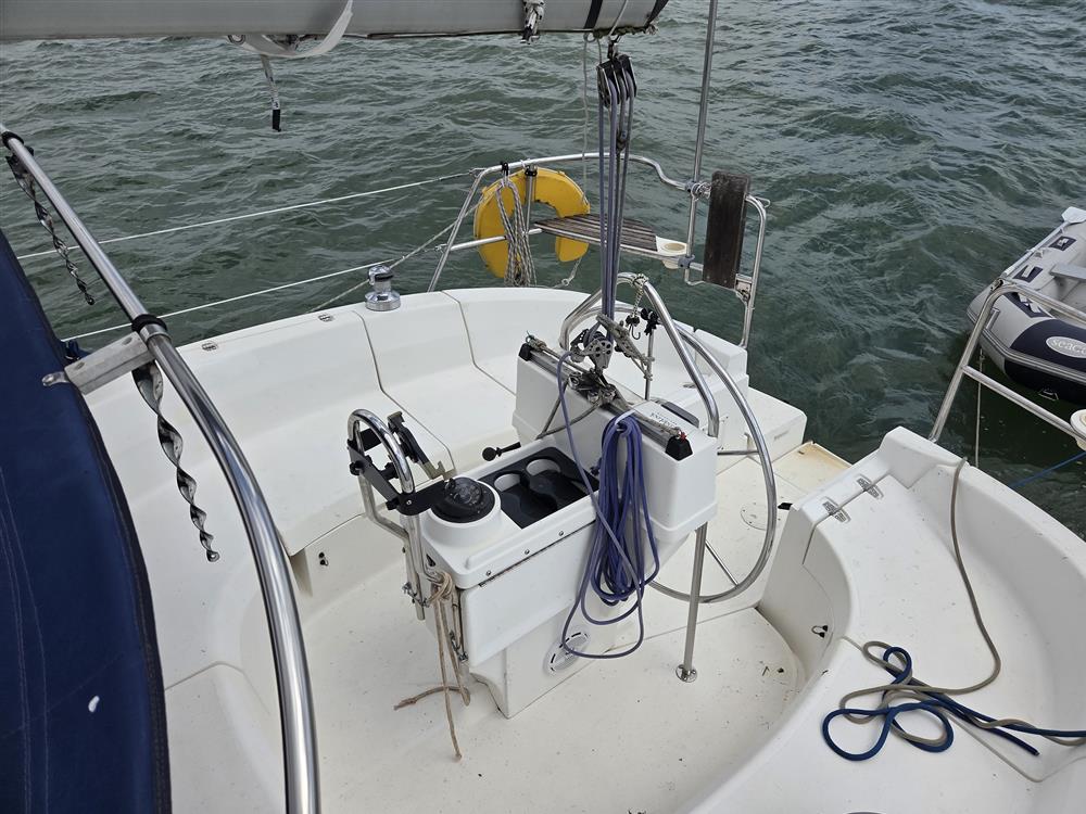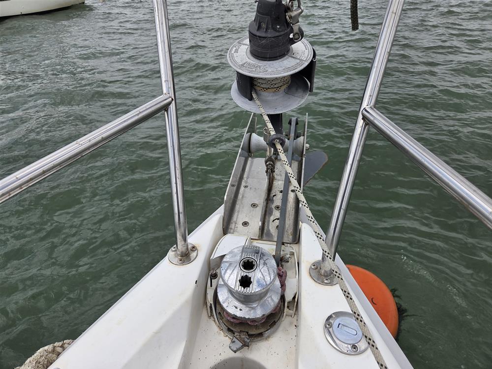 Fractionally rigged sloop. Deck stepped alloy mast and boom. Stainless steel standing rigging replaced in 2017. Twin Lewmar 30 self-tailing halyard winches and twin Lewmar 30 self-tailing primary winches.