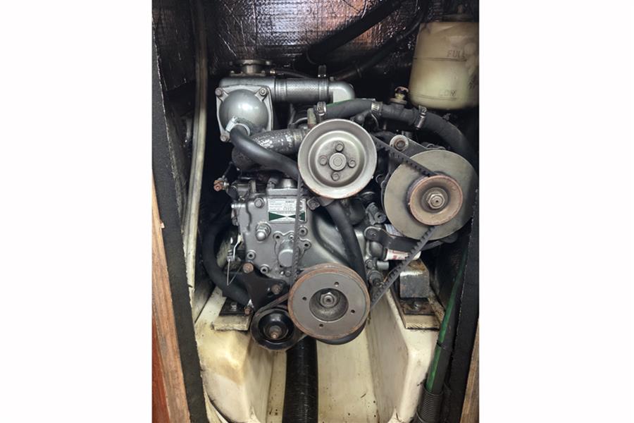 Below the companionway in an insulated engine compartment is a Yanmar 3GM30F, three cylinder, 27hp diesel engine that drives a three blade fix propeller via shaft. Approximately 2250 engine hours. Consumption around 3 litres an hour at 2800 RPM. Controlled via single lever and wheel steering at the helm in the cockpit. Approx 30 gallon diesel tank. Serviced yearly by the owner. This years mechanical servicing include an new lift pump, starting battery, fuel send, fuel tank clean and fuel polish, oil and filter and an engine mount.