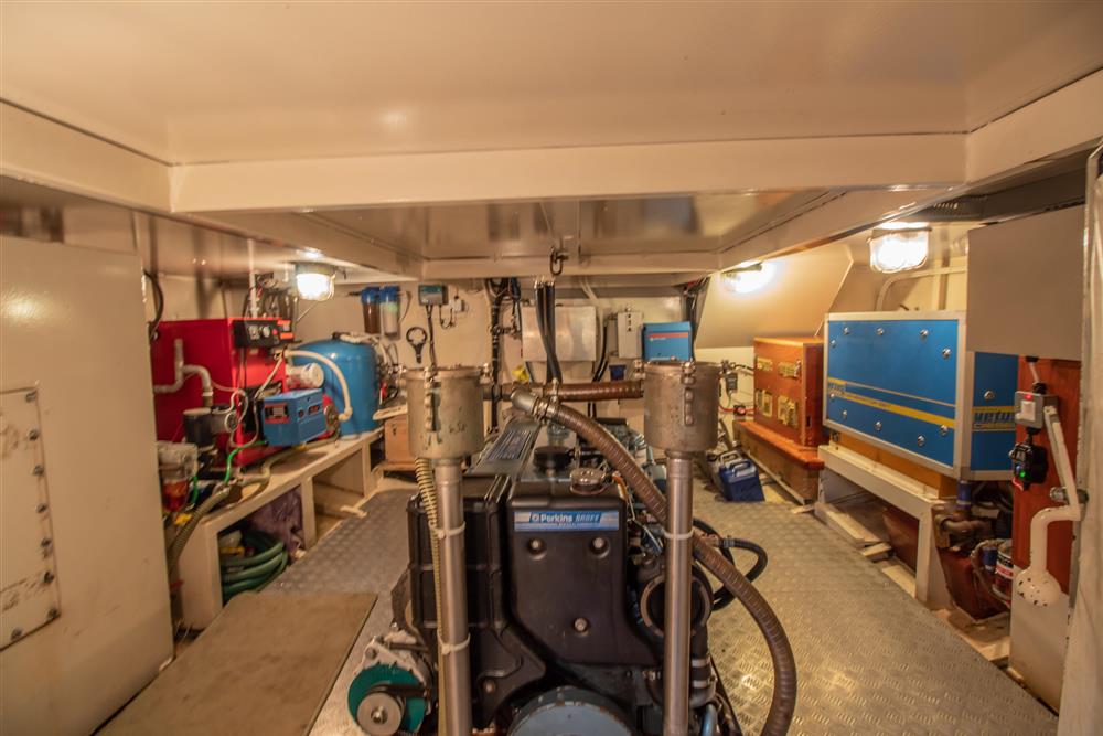 The current owner has kept the mechanical systems to a superb standard with a regular schedule of preventative maintenance and the engine has proved very reliable during their fifteen years of ownership. Current engine hours are approx. 5820 hrs and they have found that when cruising at around 7kts (approx. 1400 rpm) the fuel consumption is approximately one litre per nautical mile, offering an impressive cruising range and very low fuel costs for a boat of this size. The compartment offers excellent access to all systems together with plenty of storage areas for tools and other items.