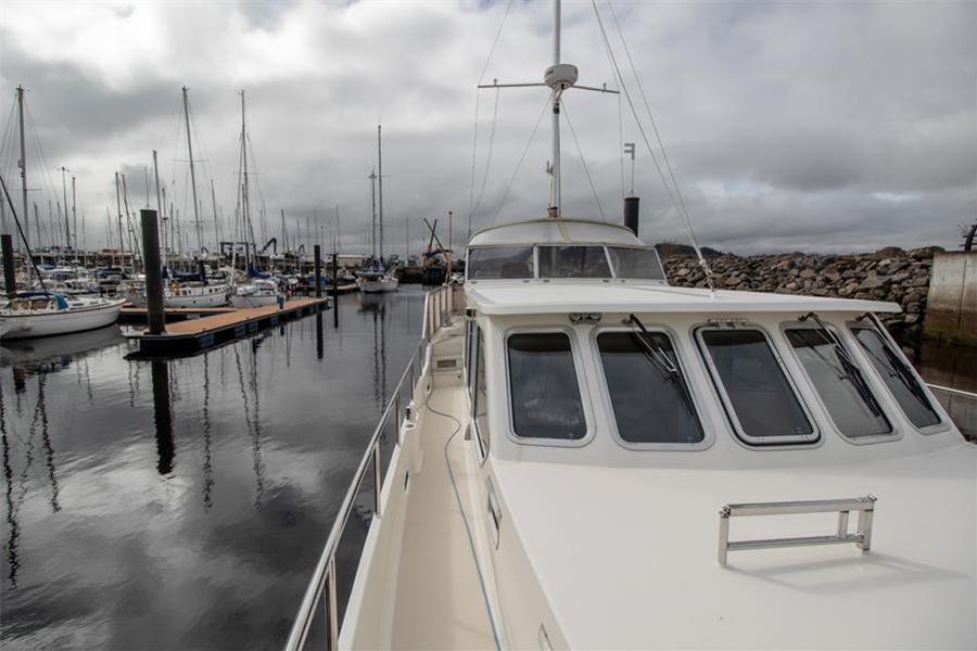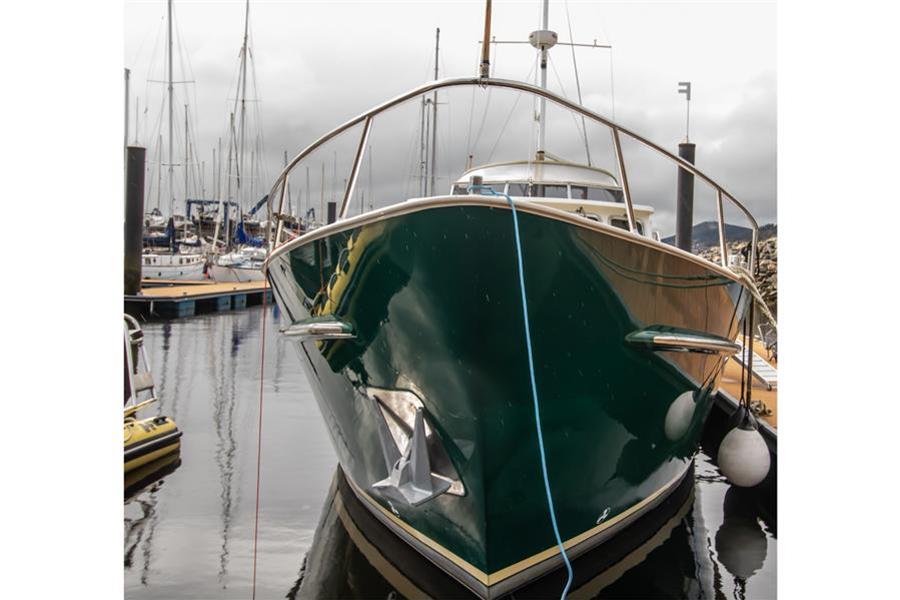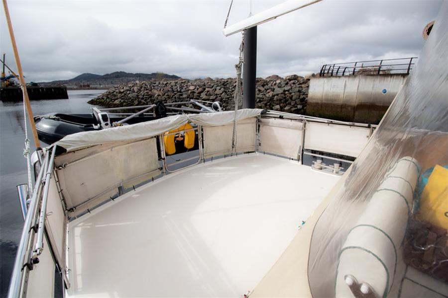 EXTERNAL SPACE: The raised aft cockpit has a helm position to starboard with two person bench helm seat with storage below, navigation equipment and a large open aft deck offering excellent space for alfresco dining and entertaining. Bridge area cockpit enclosure (new 2011) which can be used as a bimini and is designed to allow easy access fore and aft. Wide side decks with good steps, high bulwarks and heavy duty stainless steel guard rails with side gates make deck work a pleasure. Transom mounted stainless steel davits for dinghy stowage which swivel to reduce length when not in use.