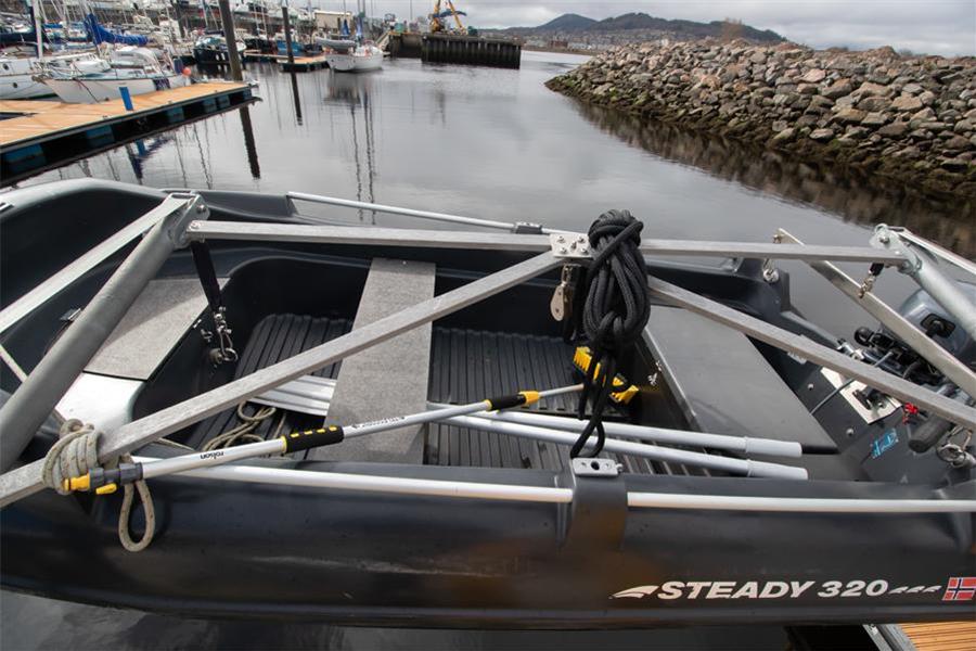 Flevo 1495 Spiegelkotter designed by Martin Bekebrede (responsible for many other highly regarded designs including the Noordkaper range, Vri-Jon OK and Steeler NG) and built by Flevo Jachtbouw of Nikerk, Netherlands in 1996 over a period of 18 months and first commissioned in 1998. Green steel displacement round bilge hull (topsides professionally resprayed with Awlgrip paint in 2005, bottom sandblasted and coated with Jotun epoxy in 2011) with long keel profile protecting propeller and stabilising bilge keels to reduce roll (professionally fitted in 2010). Cream steel superstructure and decks professionally resprayed with Awlgrip paint in 2015. Reantifouled and new anodes 2023. Dual station hydraulic wheel steering. Her air draft is a very useful 3.5m (11'6") with the mast lowered allowing access to much of the French canal system, and 10.5m (34'5") with the mast up.