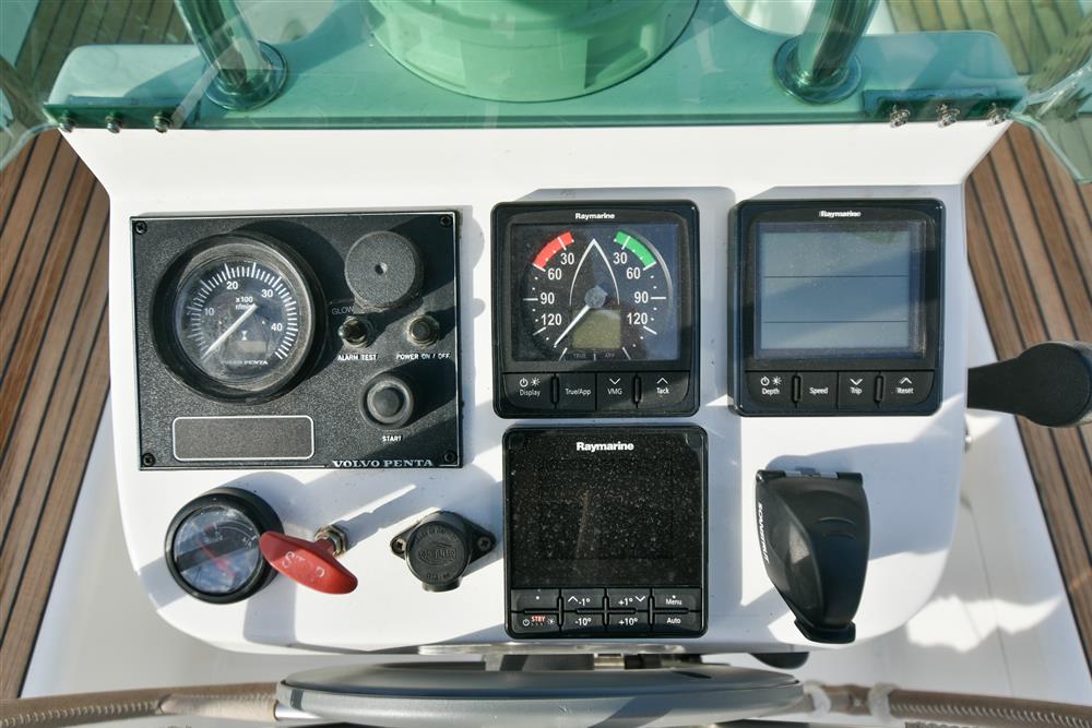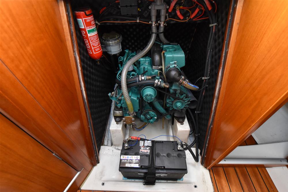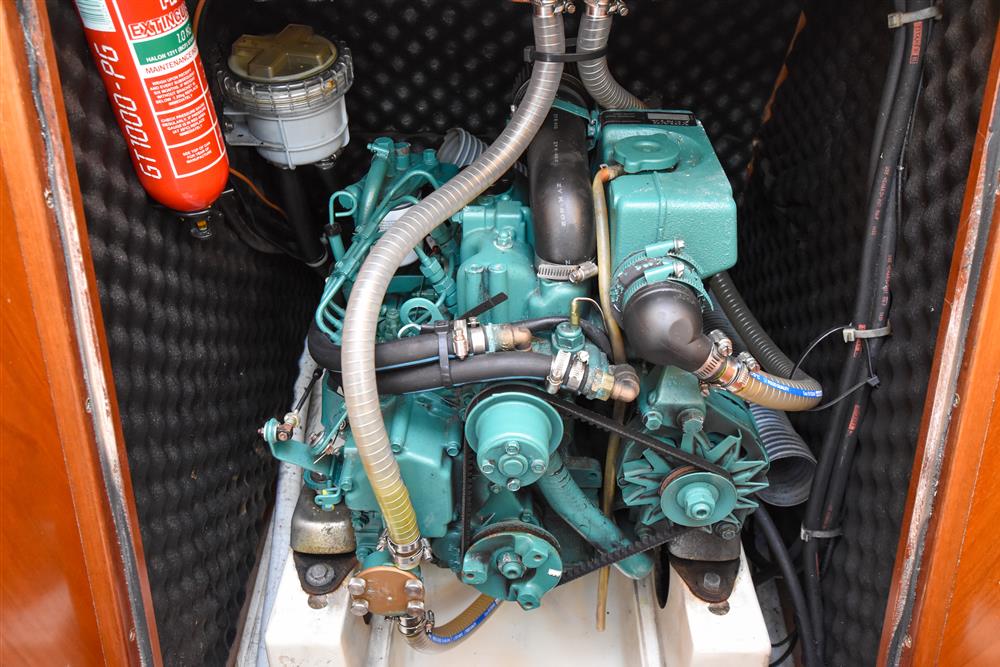 Under the companionway is the 1999 Volvo Penta MD2020 19hp diesel engine with approx. 500 engine hours. Shaft drive to 3 blade feathering prop with rope cutter. 70L plastic fuel tank. Indirect cooling. Professionally serviced every year.