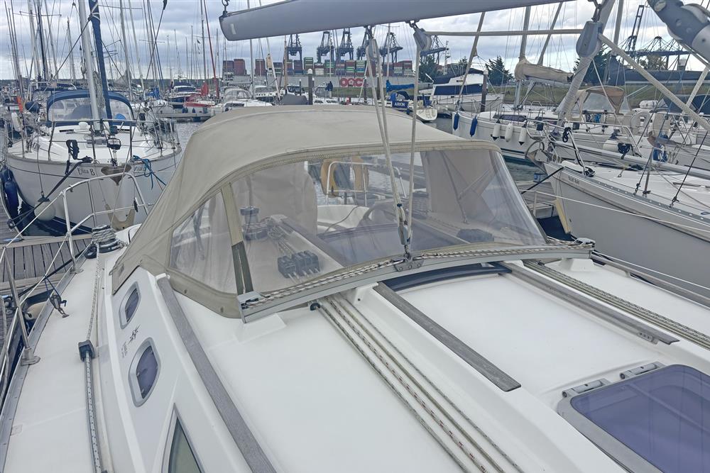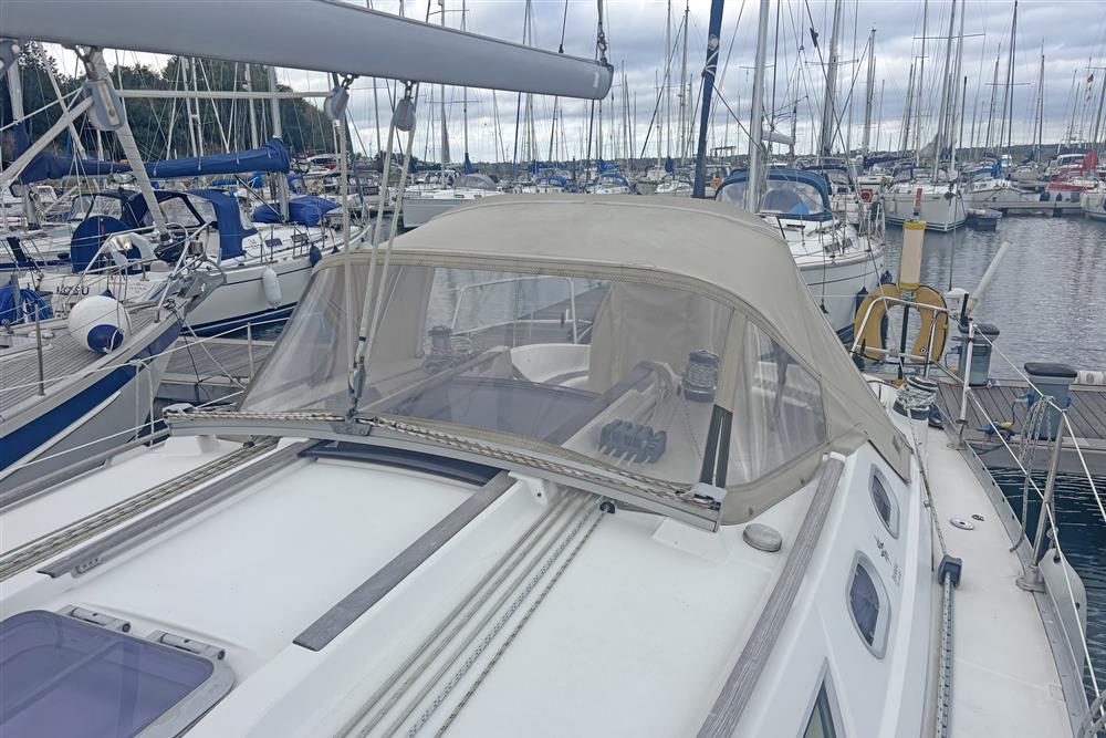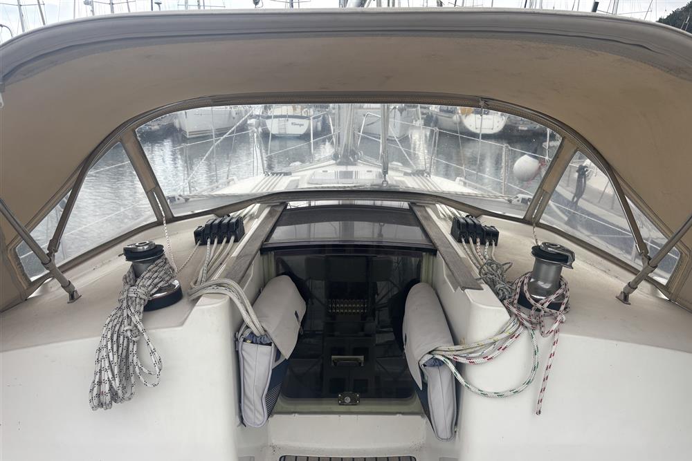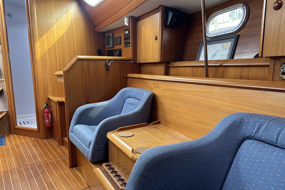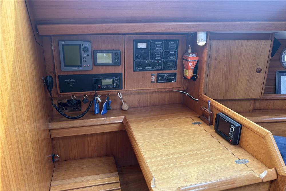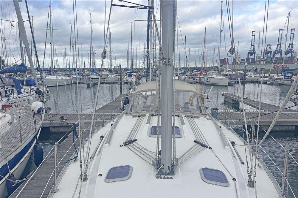Masthead rigged Bermudan sloop. Deck stepped alloy double spreader mast and boom. Stainless steel standing rigging (new 2022). In-mast furling mainsail system. Furlex headsail furling system (new 2023). Two Harken self-tailing sheet winches. Two Harken self-tailing halyard winches. All lines led aft.