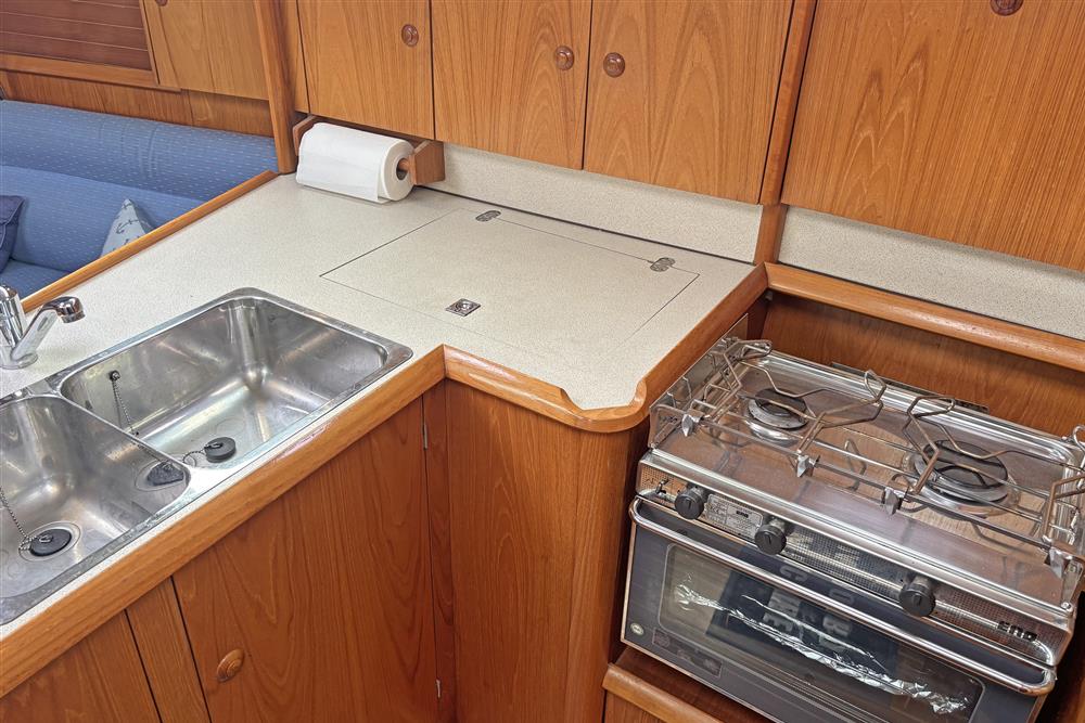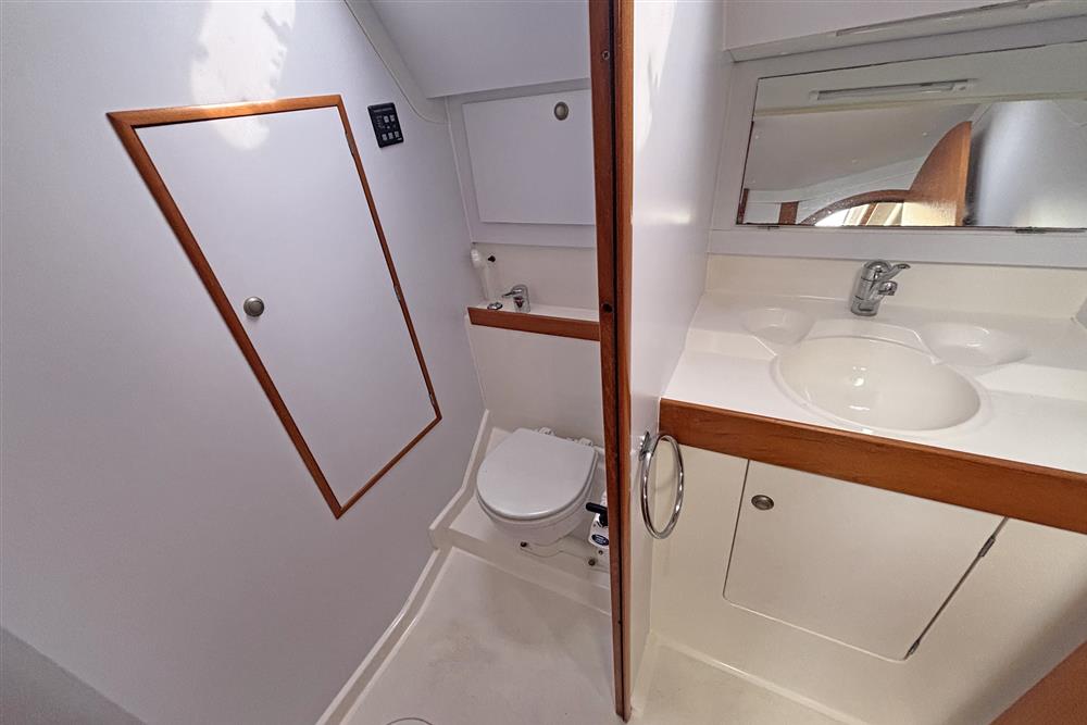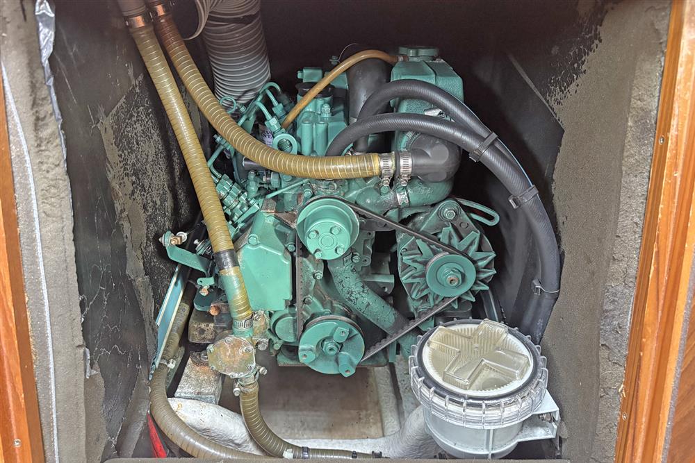 Located behind the companionway stairs is the Volvo Penta MD2030 marine diesel engine. Three cylinders, 29hp, naturally aspirated. Fresh water cooled via a heat exchanger. Single lever controls. Electric start. Shaft drive to a three blade Darglow feathering propeller. Approximately 800 hours on the engine. Regularly serviced. Recent exhaust silencer, cutlass bearing & stern gland. VETUS BOWTHRUSTER.