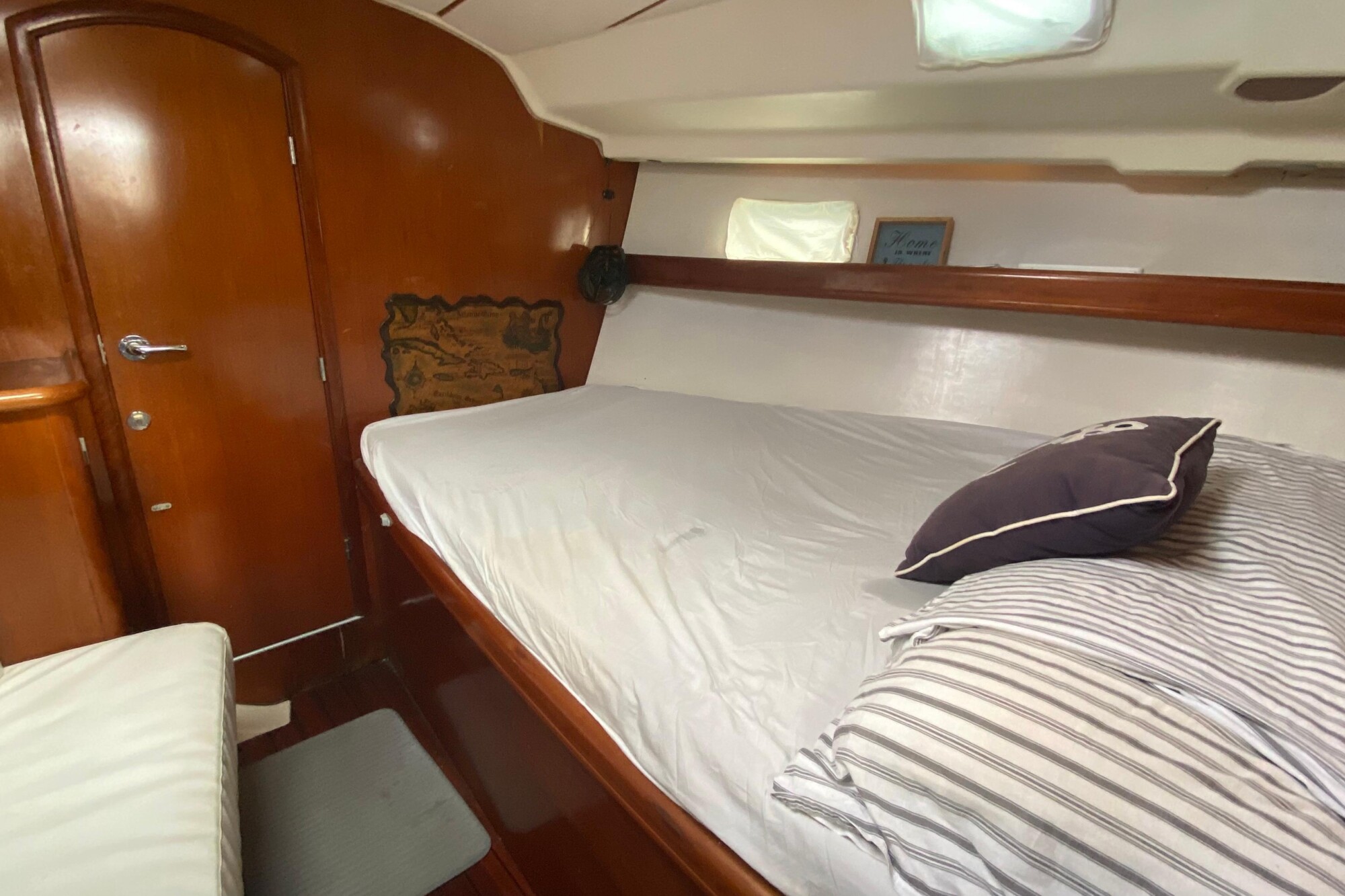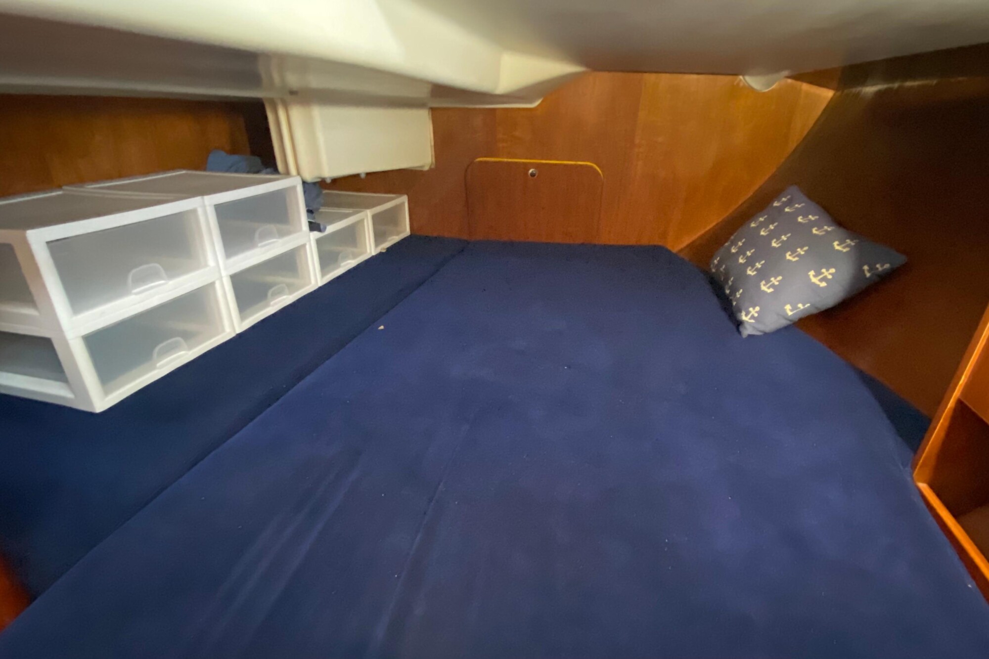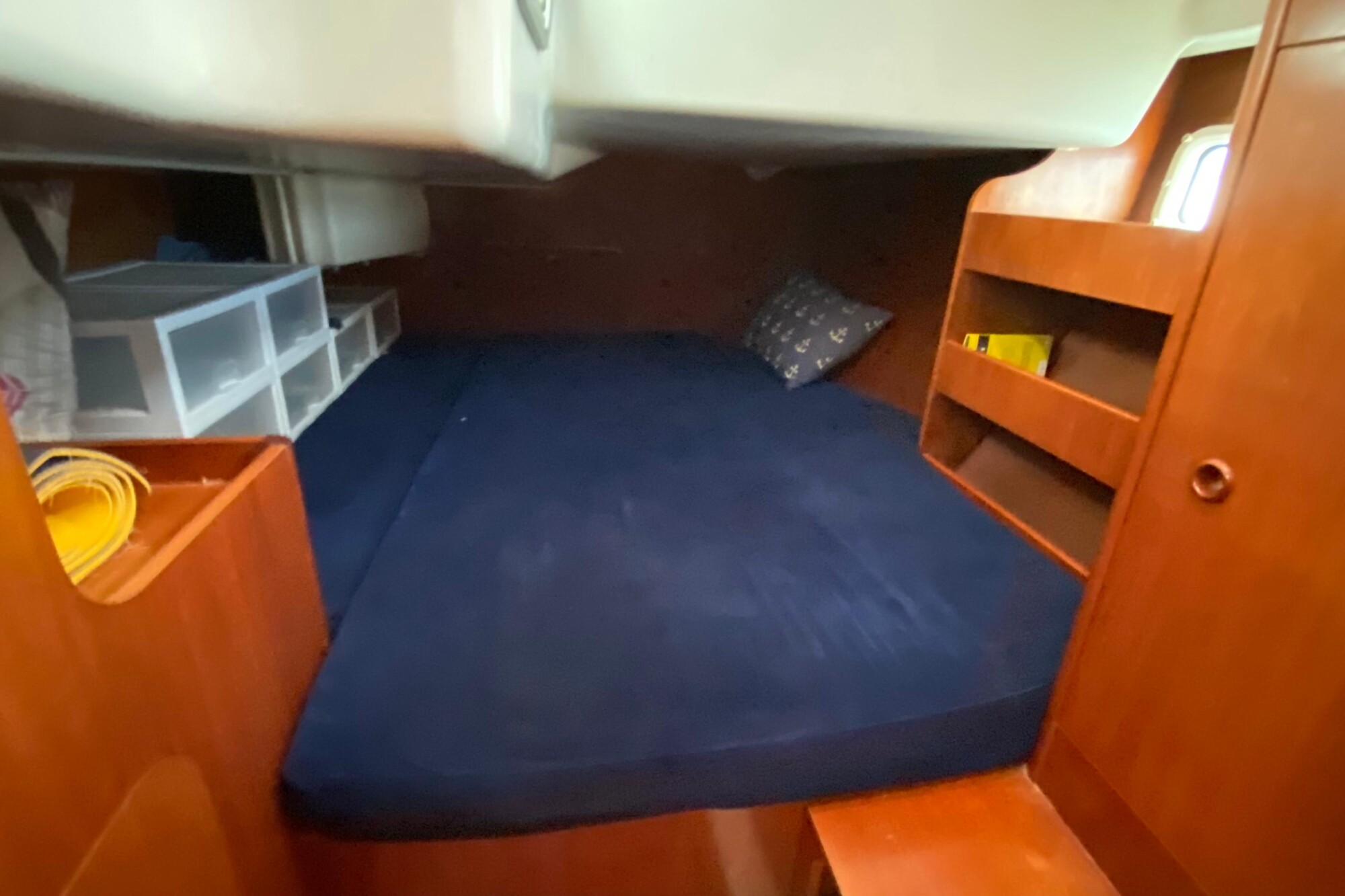 The layout offers up to 4 berths in 2 cabins.There is full standing headroom and good ventilation throughout.
