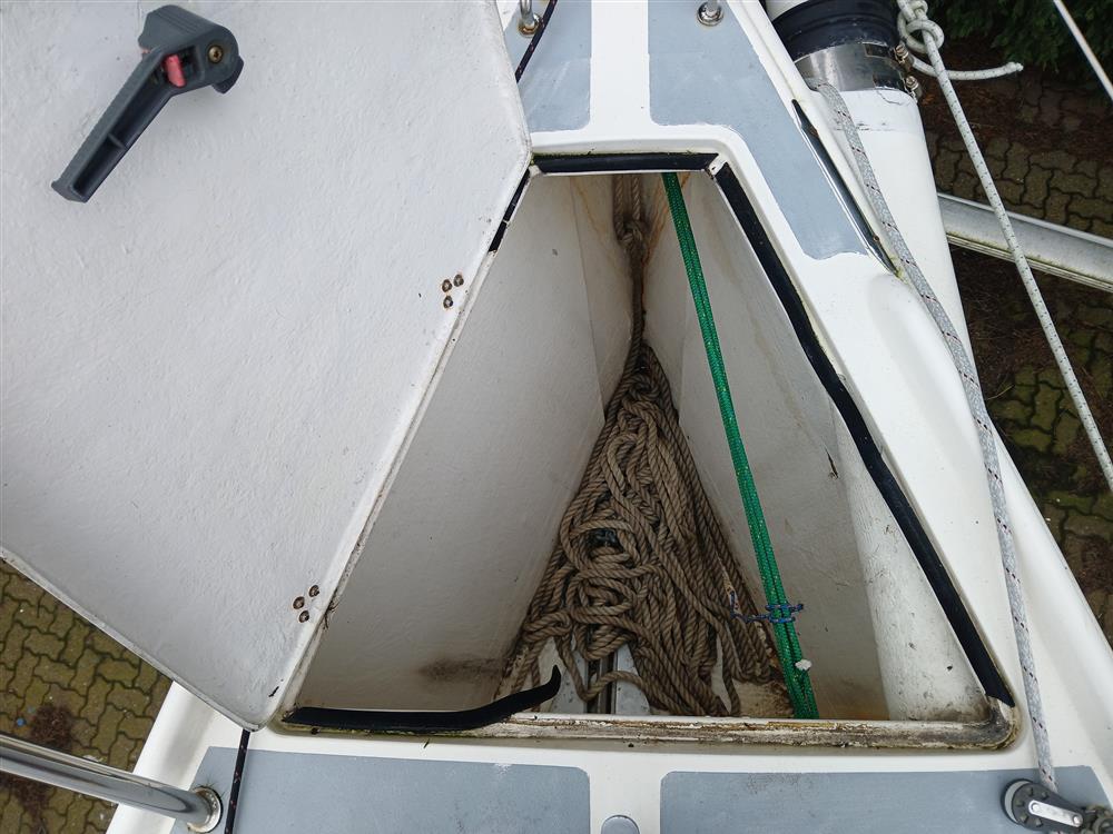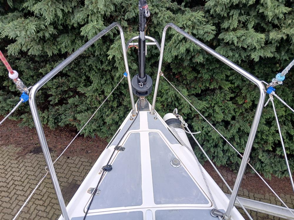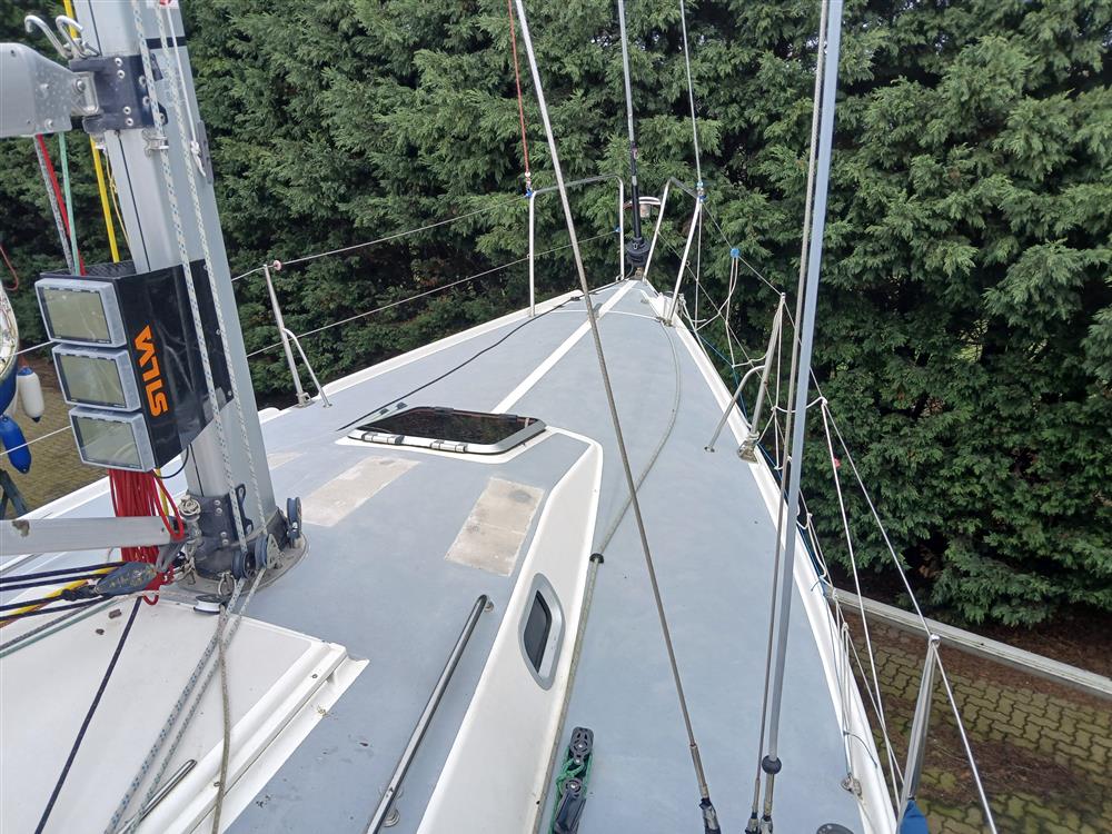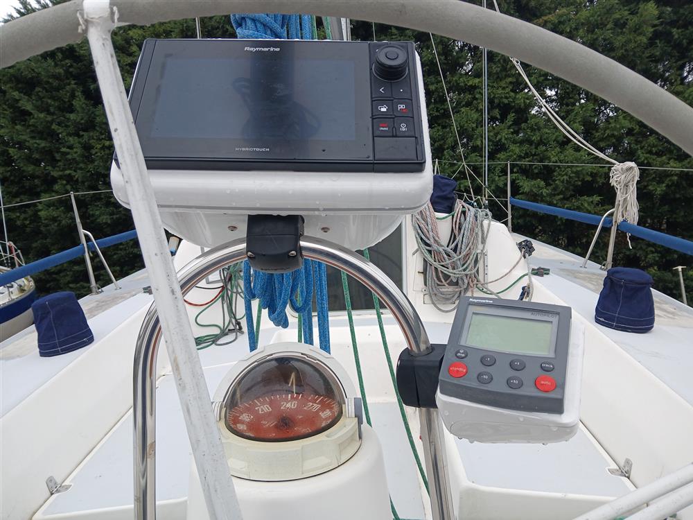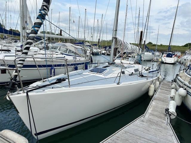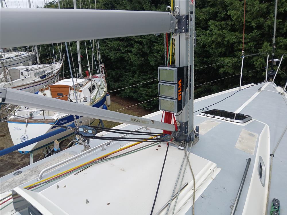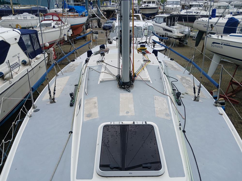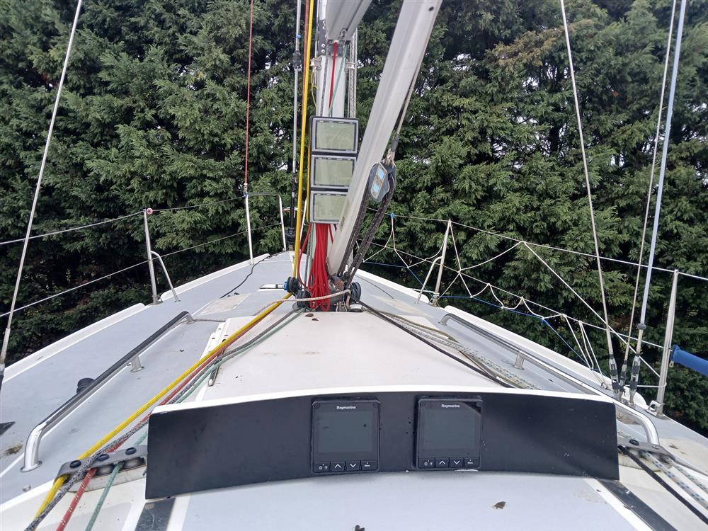 Fractionally rigged sloop. Sparcraft anodised aluminium double spreader, keel stepped mast (new 2014) with double airfoil spreaders and boom. Dyform standing rigging (new 2014). Harken MkIV headsail furling system (new 2014). Navtec hydraulic backstay tensioner. Solid vang rod kicker. Carbon fibre retractable bow sprit. Two reefs. Halyards renewed 2023. Main blocks replaced in 2012. 2 x Harken 44 self?tailing two-speed primary winches. 2 x Harken 32 self?tailing two-speed halyard winches. 32mm clear anodised jib T-tracks with towable cars. Harken 24:1/6:1 mainsheet system and traveller car with 4:1 traveller control lines.