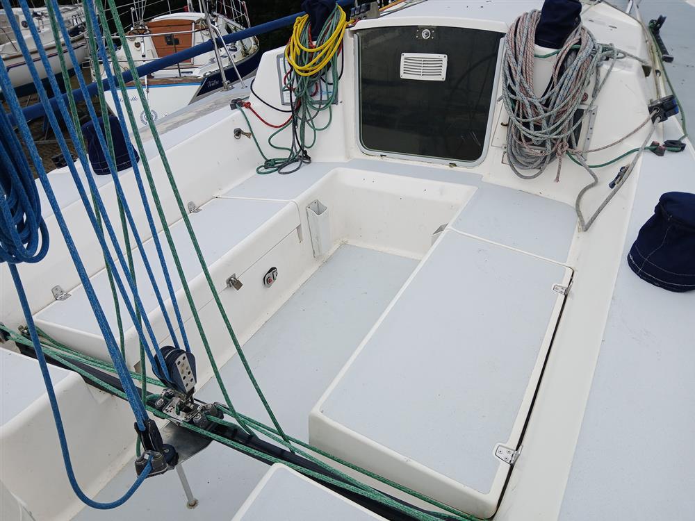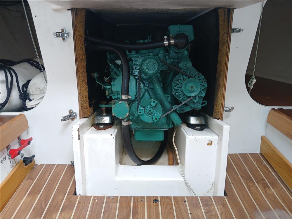 Located below the companionway and with good access. Volvo Penta MD2020, 3-cylinder, 19hp diesel engine. Freshwater cooled via heat exchanger. Single lever controls with electric start. Shaft drive to two-blade Gori folding propeller (new 2021). The engine appears to be in very good cosmetic condition and has proven reliable under current ownership, last full service was carried out in 2025. New engine mounts and cutless bearing 2023.
