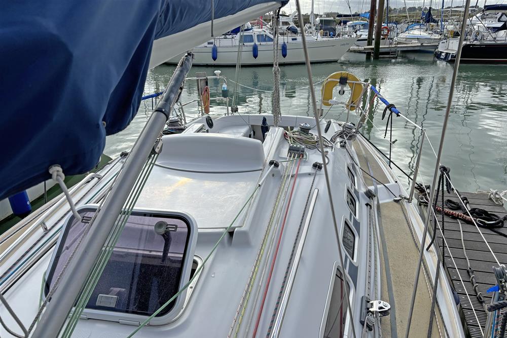 Fractionally rigged Bermudan sloop. Deckstepped alloy mast and boom. Stainless steel discontinuous rod rigging (2013). Removeable bow sprit. Spinnaker pole. Harken headsail furler. All lines led aft. Slab reefing mainsail with single line reefing. Laxyjacks & stackpack. Adjustable dyneema backstay (24:1). Rod kicker. Two Lewmar ST30 sheet winches. Two Lewmar ST16 halyard winches. Dehler self-tacking jib traveller and fittings (Not fitted). Mainsheet fine tuning control (Not fitted). Mainsail - North Sails (2022) - Fully battened - Cruising laminate No1 genoa - North Sails (2022) - Cruising laminate Storm Jib Symmetrical spinnaker - Sander Sails Asymmetrical Spinnaker with a snuffer Selection of old sails Built by Dehler Yachts in 2001 to a design of Judel/Vrolijk & co. Dark blue GRP hull. Hull epoxied below the waterline in 2013. White GRP decks & superstructure with moulded non-slip decks. Cat iron fin keel with a lead bulb. Tiller steering to a spade hung rudder. Last ashore in March 2024 when anodes and antifouling was done.General Equipment