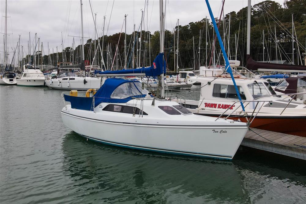 The Hunter Ranger 245 is a compact family cruiser with a surprising amount of room below. The David Thomas design is a twin keel configuration, which makes it ideal for exploring the shallow waters of the East Coast and beyond, but they are still a highly regarded sea boats for their size. Two Cats appears to present in a sound condition.