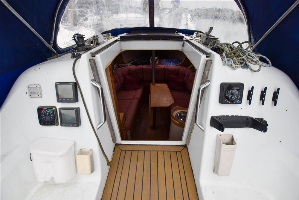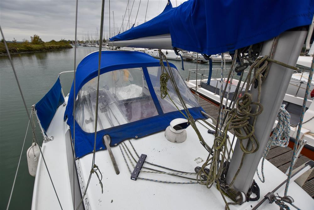 Fractionally rigged Bermudan sloop. Deck stepped alloy mast and boom by Z-Spars. Stainless steel standing rigging. Slab reefing mainsail. Headsail furling system. self-tacking jib. Rigging serviced and furler replaced 2023.