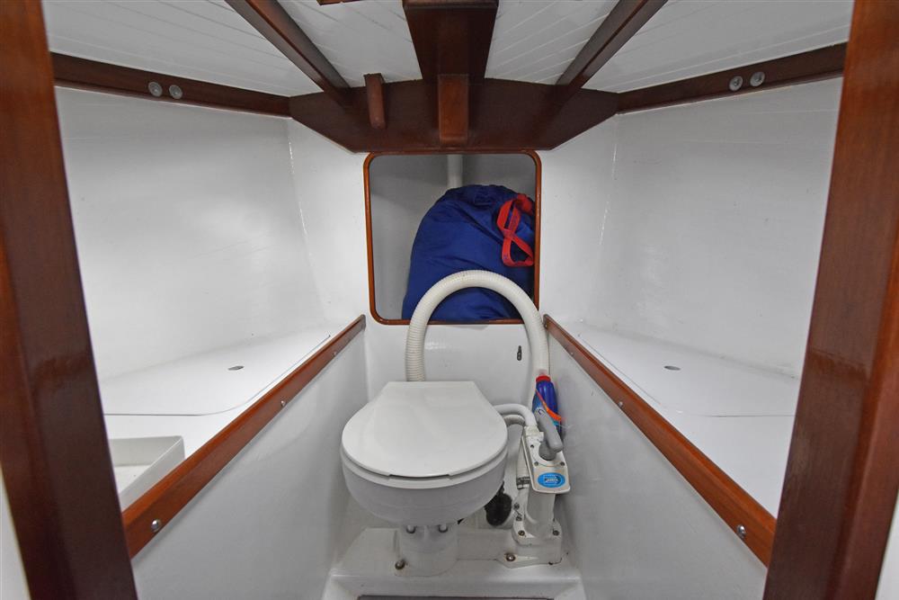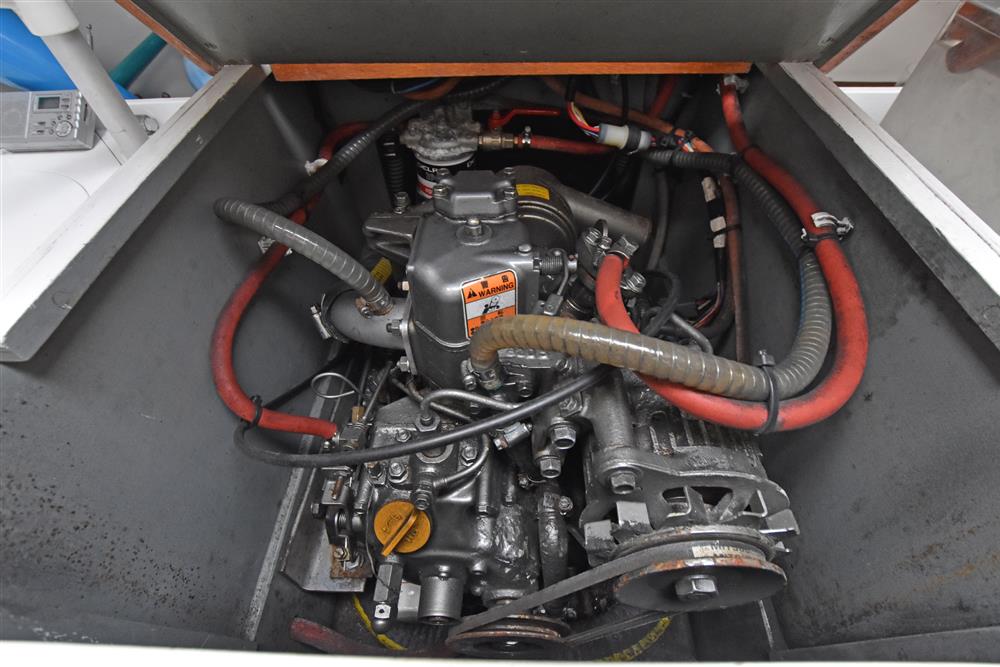 Located under the companionway, Yanmar 1GM10 single cylinder 9hp diesel engine. Electric start. Seawater cooled. Shaft drive to Featherstream three bladed feathering propeller. Single lever control. 25 litre fuel capacity. The engine was fully overhauled by French Marine in 2019. Regularly serviced.