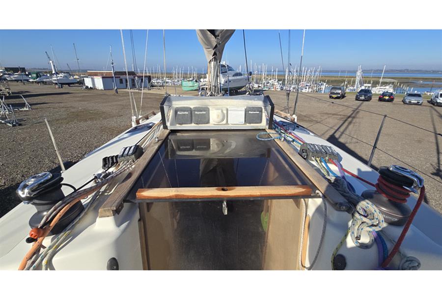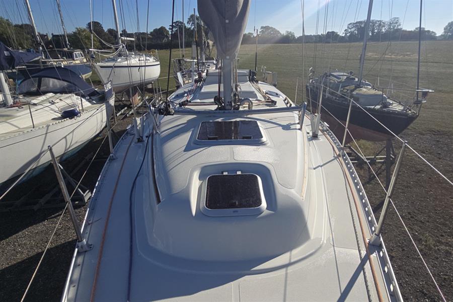 Fractionally rigged sloop with deck stepped, double spreader alloy mast and boom. Stainless steel standing rigging (new 2023). Terylene running rigging. Slab reefing mainsail and furling jib with self-tacking track. Profurl headsail furling system. Twin Harken self-tailing two-speed halyard winches on the coachroof and twin Harken self-tailing two-speed primary winches in the cockpit Twin Harken self-tailing spinnaker sheet winches.