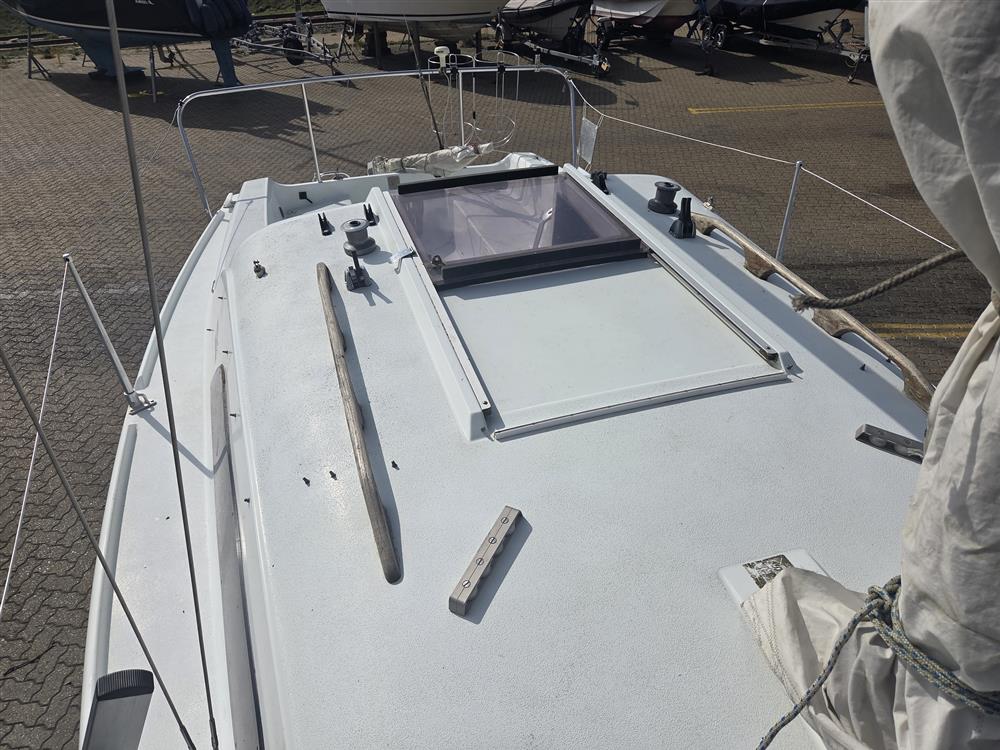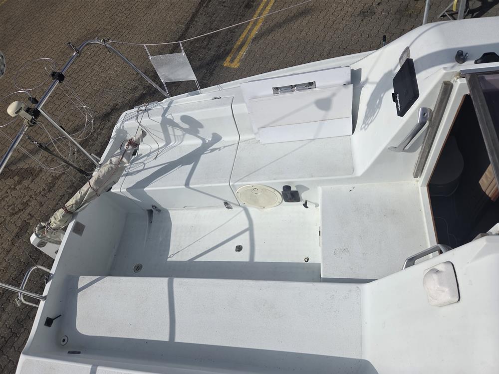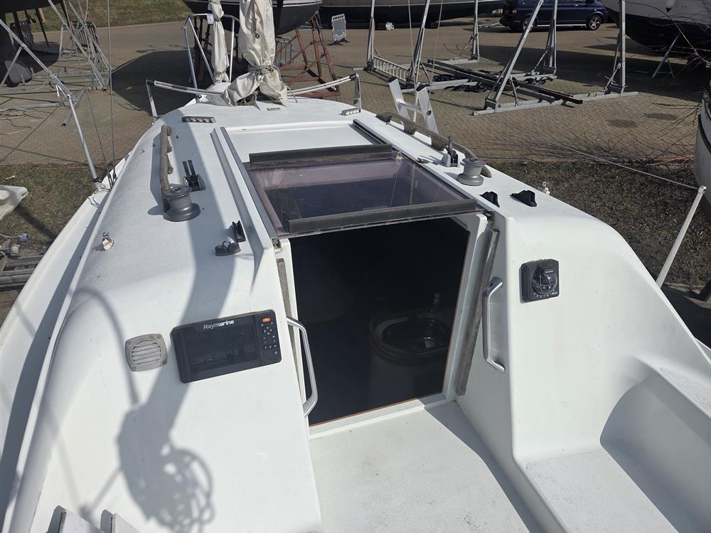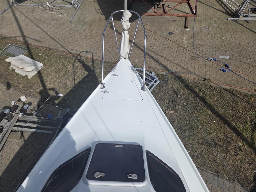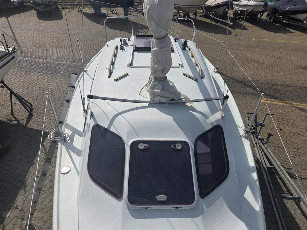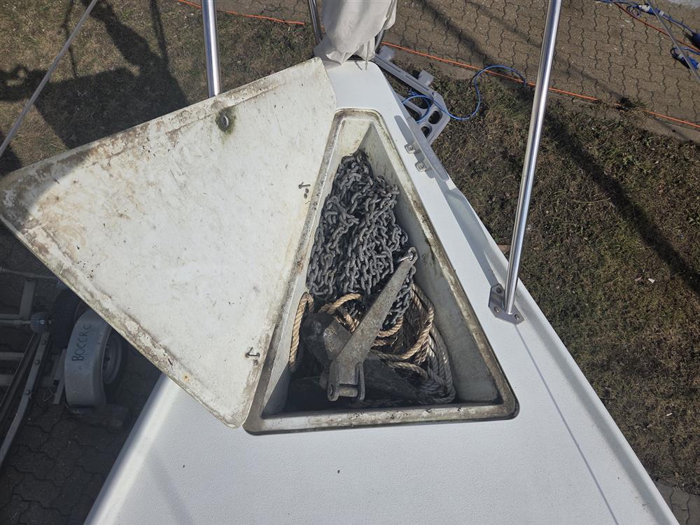 Fractionally rigged sloop. Silver anodised, single spreader mast and boom. Stainless steel standing rigging (2003). Terylene running rigging. Slab reefing mainsail with lazy jacks. Plastimo 406-S headsail furling system. Self-tacking jib track. 2 x Lewmar 6 winches on coachroof.