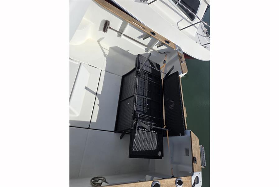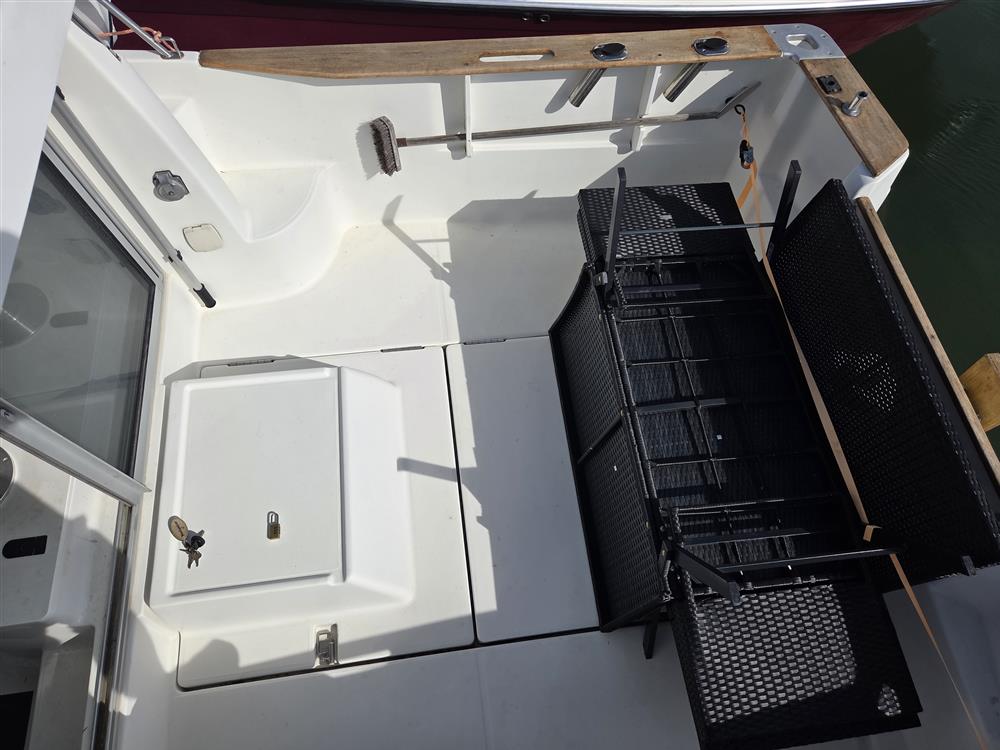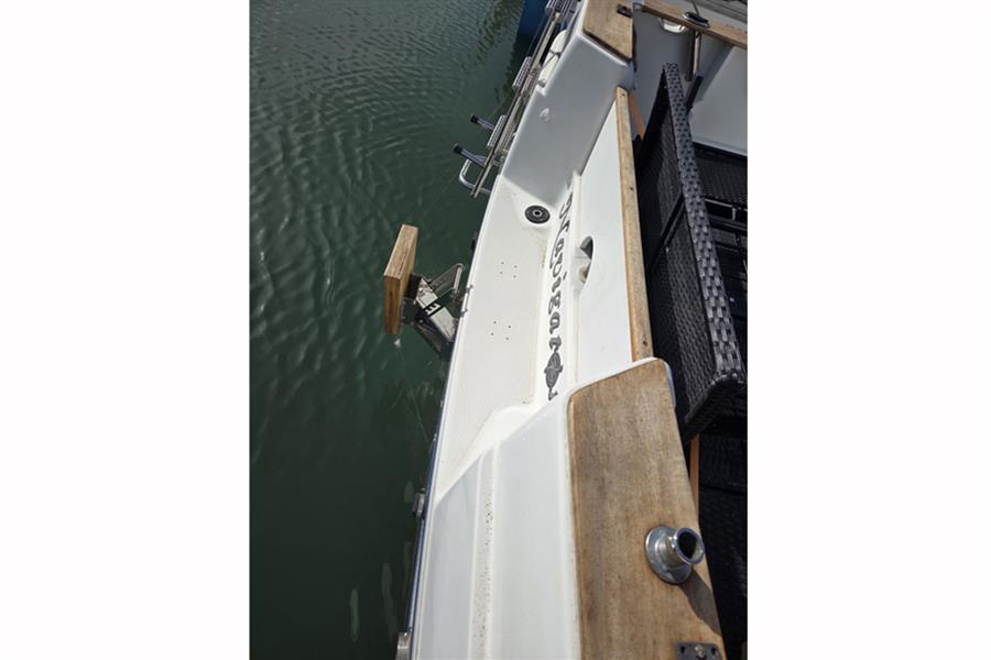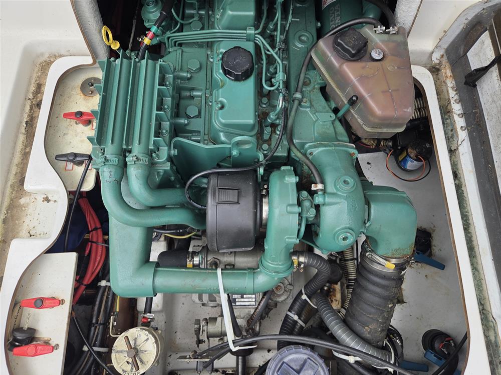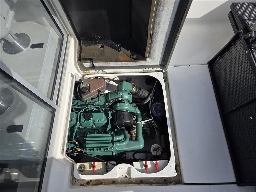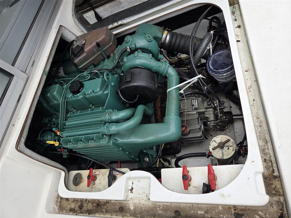 Located under forward end of cockpit under large hatch for easy access. Volvo Penta TAMD 31P, four cylinder, turbocharged 155hp marine diesel engine. Fresh water cooled via heat exchanger. Shaft drive to three blade bronze propeller. Rope cutter to shaft. Morse single lever engine control. 130 litres fuel capacity in single under floor Polypropylene tank. Approx. 12 knots cruising and 20 knots maximum speeds (subject to loading and fouling). The engine has recorded some 660 hours from new and was last serviced in 2025 including new cutless bearing and R&D shaft coupling.