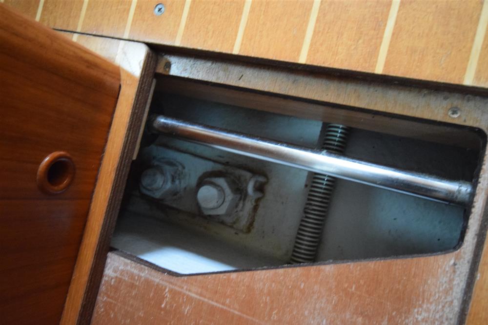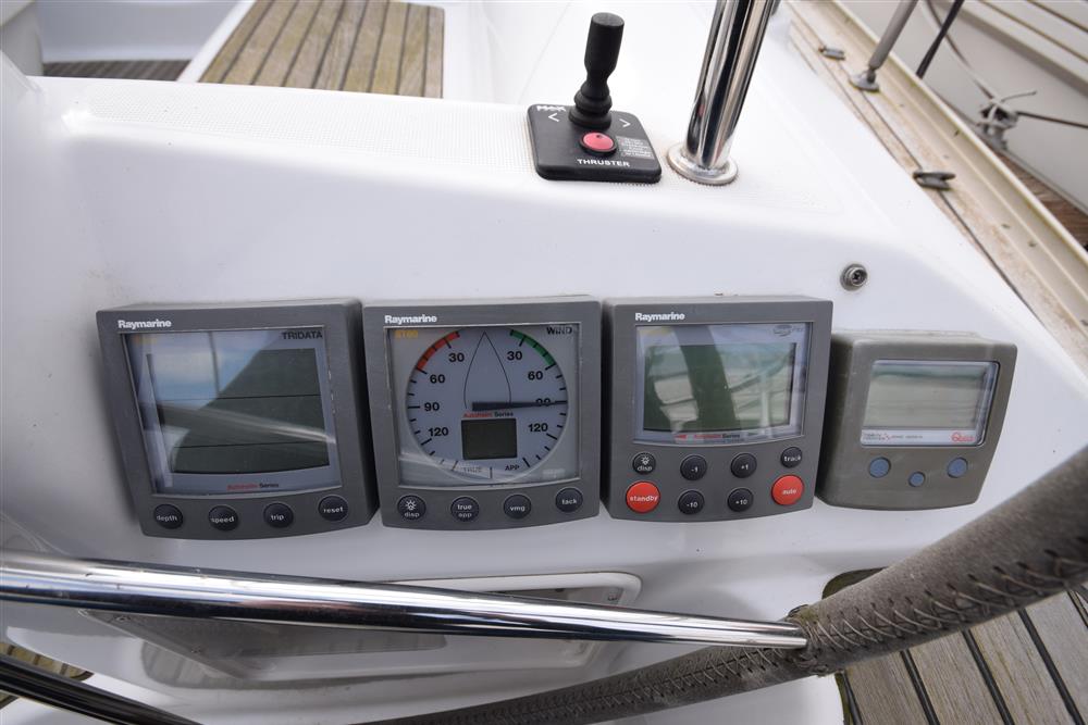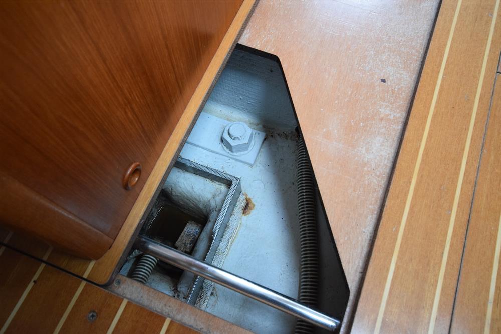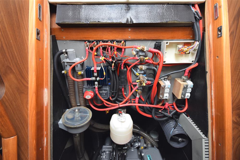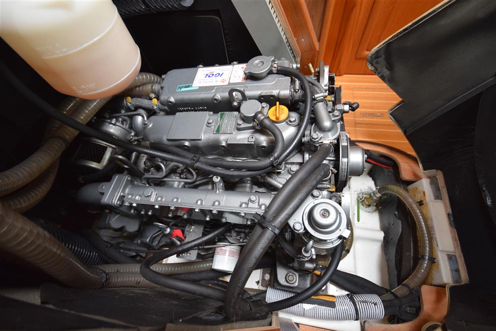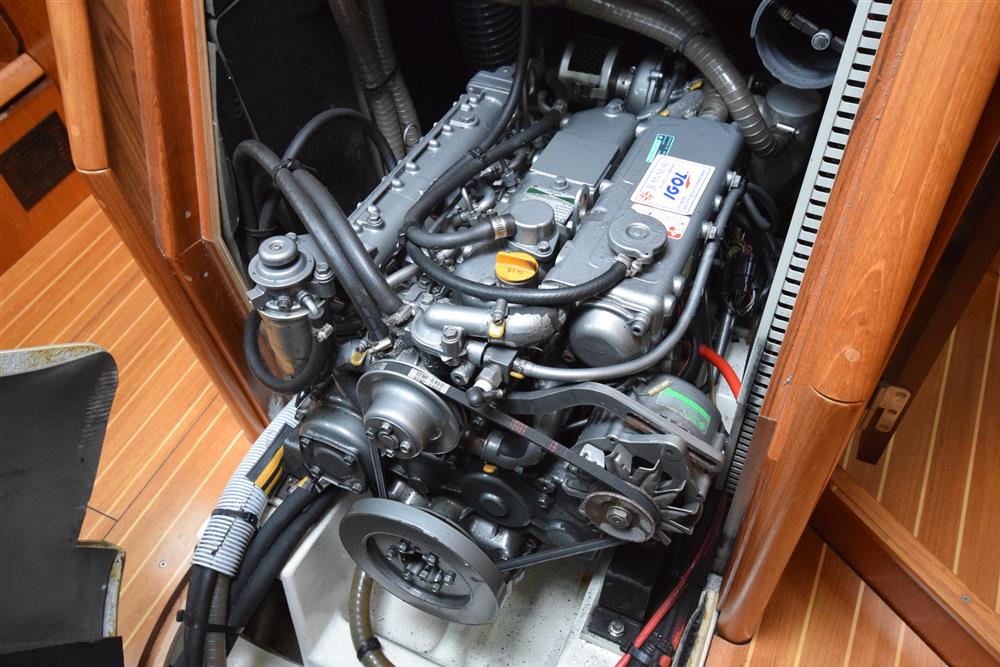 Located behind the companionway, year 2004, Yanmar 4 cylinder 75hp diesel engine. Electric start. Freshwater cooled via heat exchanger. Shaft drive to three bladed folding propeller. Rope cutter. Single lever control. 200 litres fuel capacity in plastic tank giving approximately 250 miles range at 7 knots cruising speed. Maximum speed under power 8.5 knots. The engine has been regularly professionally serviced and has logged some 1,154 hours from new. New saildrive diaphragm (2025). Max Power bow thruster.