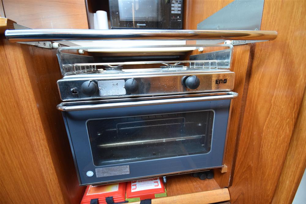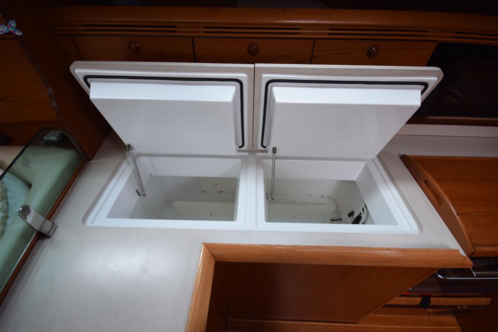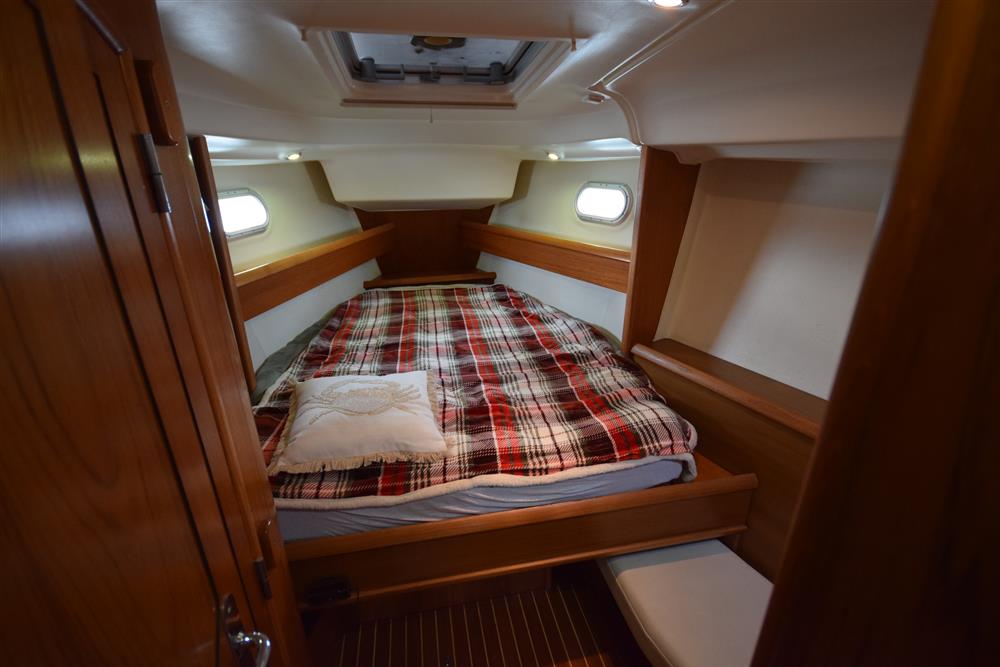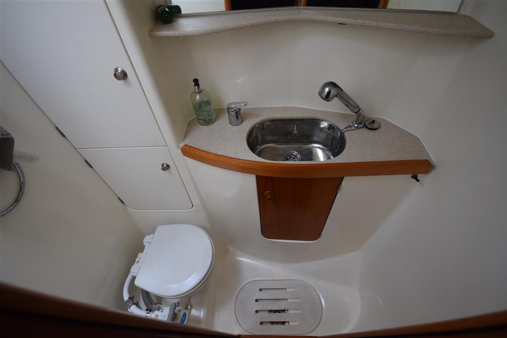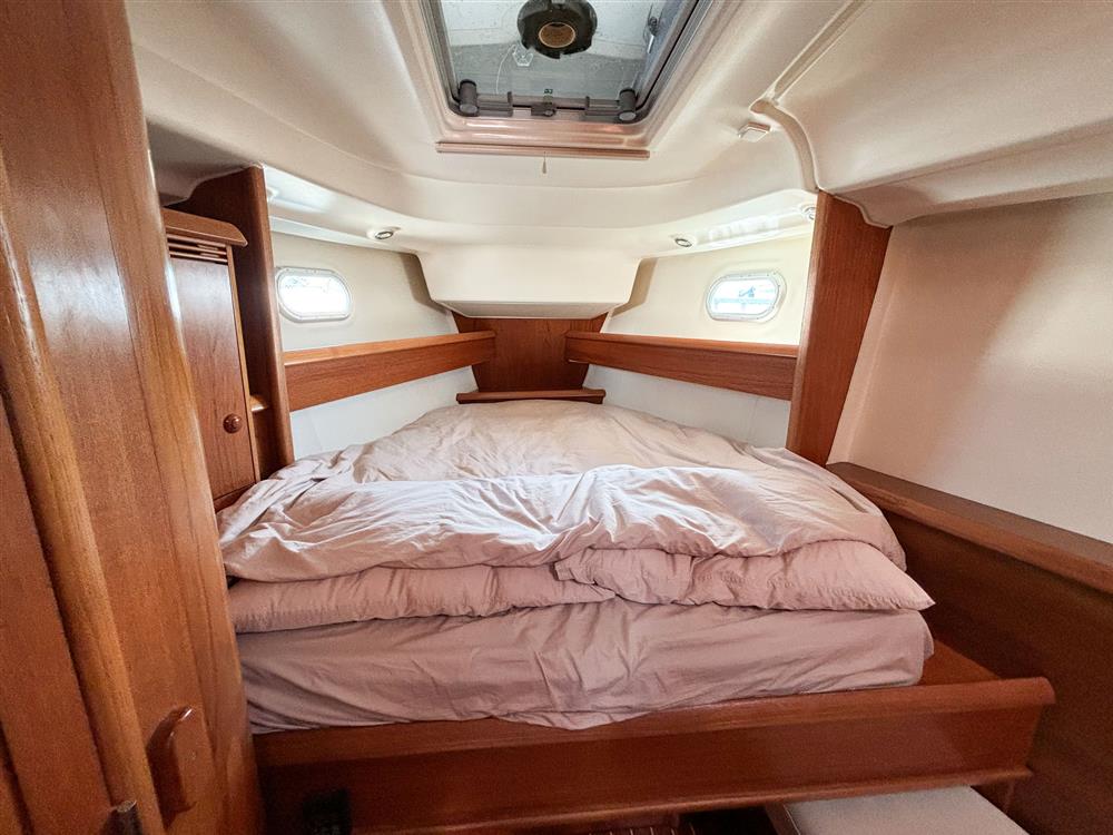 Located behind the companionway, year 2004, Yanmar 4 cylinder 75hp diesel engine. Electric start. Freshwater cooled via heat exchanger. Shaft drive to three bladed folding propeller. Rope cutter. Single lever control. 200 litres fuel capacity in plastic tank giving approximately 250 miles range at 7 knots cruising speed. Maximum speed under power 8.5 knots. The engine has been regularly professionally serviced and has logged some 1,154 hours from new. New saildrive diaphragm (2025). Max Power bow thruster.