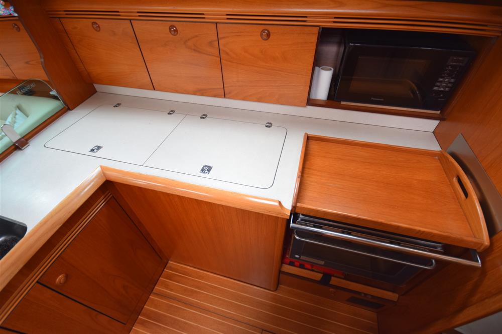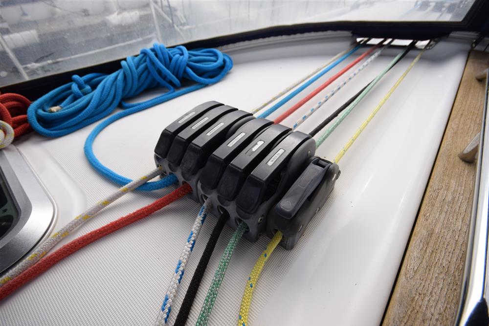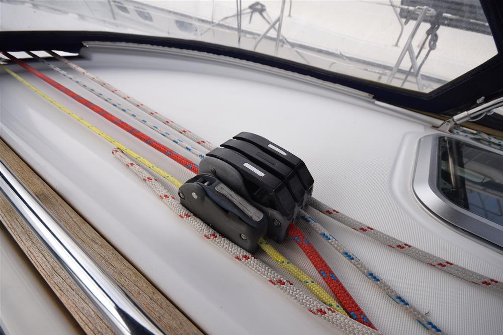 Masthead rigged sloop. Anodised aluminium mast and boom by Z Spars. Stainless steel standing rigging. Terylene running rigging. In-mast furling mainsail. Profurl headsail furling system. Lines led aft to cockpit. Two Harken 53 self tailing primary sheet winches. Two Harken 44 self tailing secondary sheet winches. Two Harken 44 self tailing halyard winches, one electric. Rod kicker.