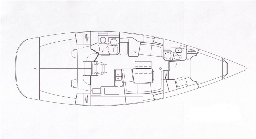 The light and airy interior is pleasantly finished with teak joinery and there is full standing headroom throughout. There are three double sleeping cabins separate from the main accommodation plus two saloon berths. In the forward cabin, large double berth with stowage under. Opening hatch to deck. Hanging locker and vanity unit. En-suite heads compartment with marine toilet, shower and washbasin. In saloon, dinette to starboard with small settee opposite. Chart table to port with galley opposite. Two burner gimballed gas cooker with oven. Twin stainless steel sinks with hot and cold pressurised water system. 300 litres freshwater capacity in two tanks. Large refrigerators. Microwave oven. Separate heads compartment to port with marine toilet, shower and washbasin. This has an en-suite door to the port aft cabin as well. Twin aft cabins, both with double berths and hanging lockers. Diesel fired hot air central heating. Radio/CD player.