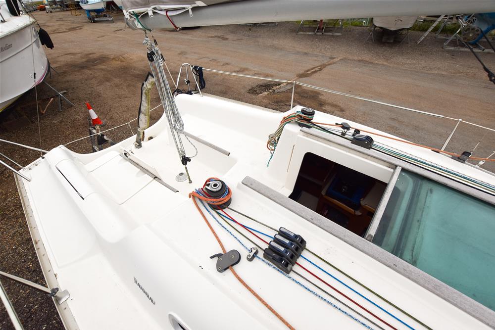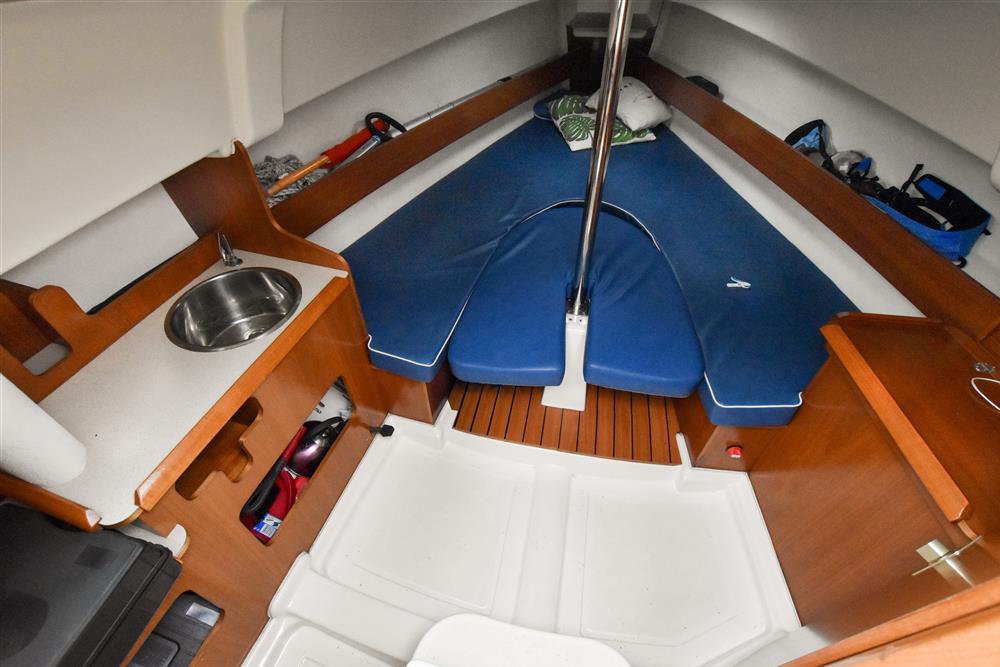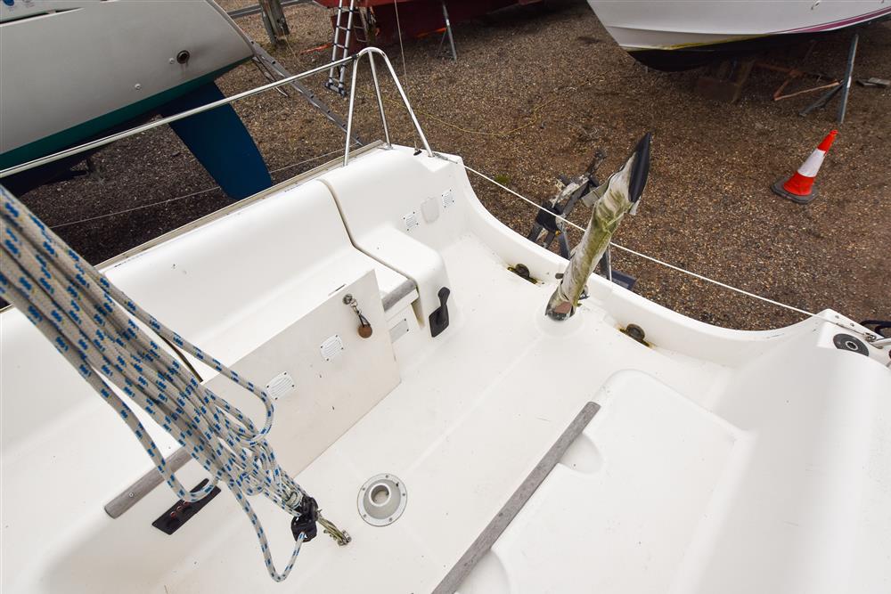 Built by Jeanneau in 2004 to Olivia Pettit design. Blue grp hull with style stripes and alloy toe rails. Cream/white grp coachroof with moulded non skid decks. Tiller steering to twin spade rudders. Cast iron shallow fin keel with lifting plate. Keel raises using coachroof winch and is simple to operate. Keel mechanism removed and replaced in 2021. Self draining anchor well and large cockpit. Teak cockpit foot rested. Stainless steel safety rails and pvc coated lifelines.