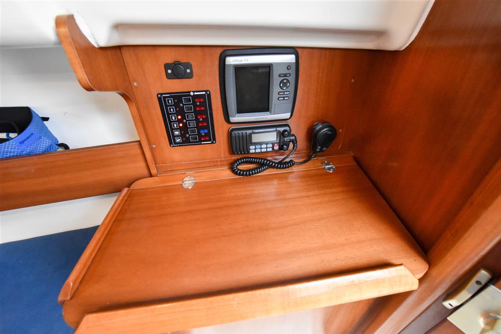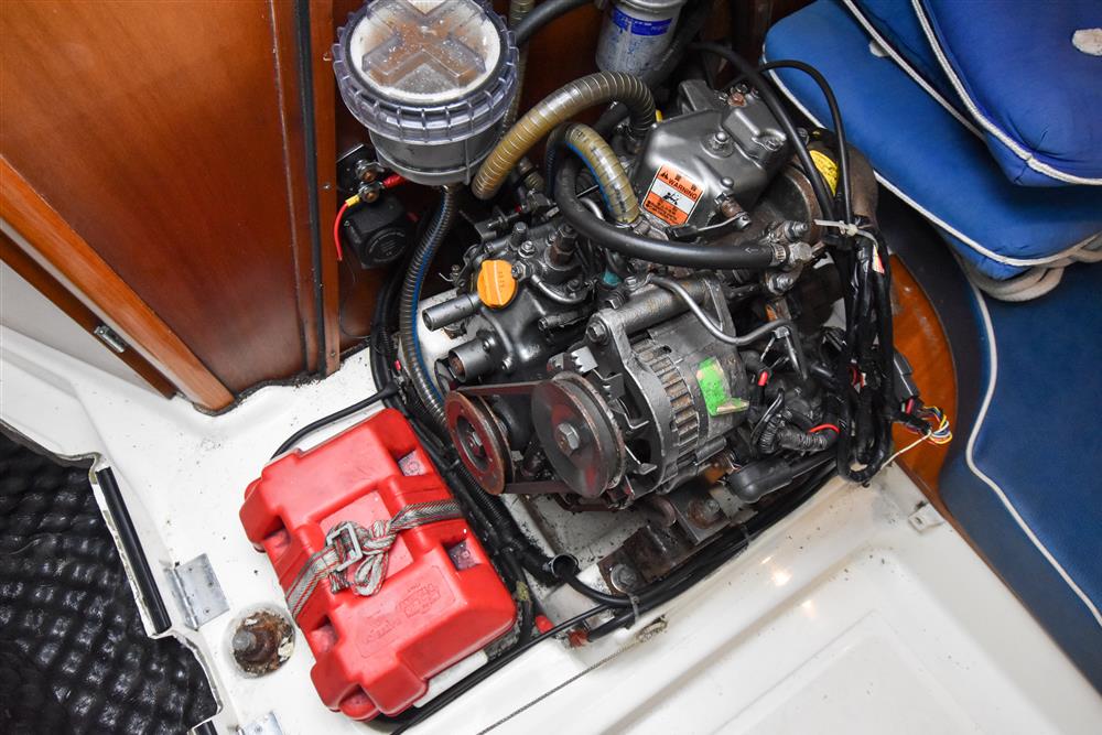 Located under companionway in hinged box/stairs for unparallel access. Year 2004, Yanmar 1GM10 marine diesel engine. 9hp. Single cylinder. Sea water cooled. Shaft drive to feathering propeller. New stern gland in 2021. 26 litre fuel tank. Single lever controls. The engine start panel is mounted in the cockpit which is much easier than the standard. Th engine is regularly professionally serviced. Last done in May 2025 ? always winterised and parts replaced where necessary. No hour meter, so hours unknown.