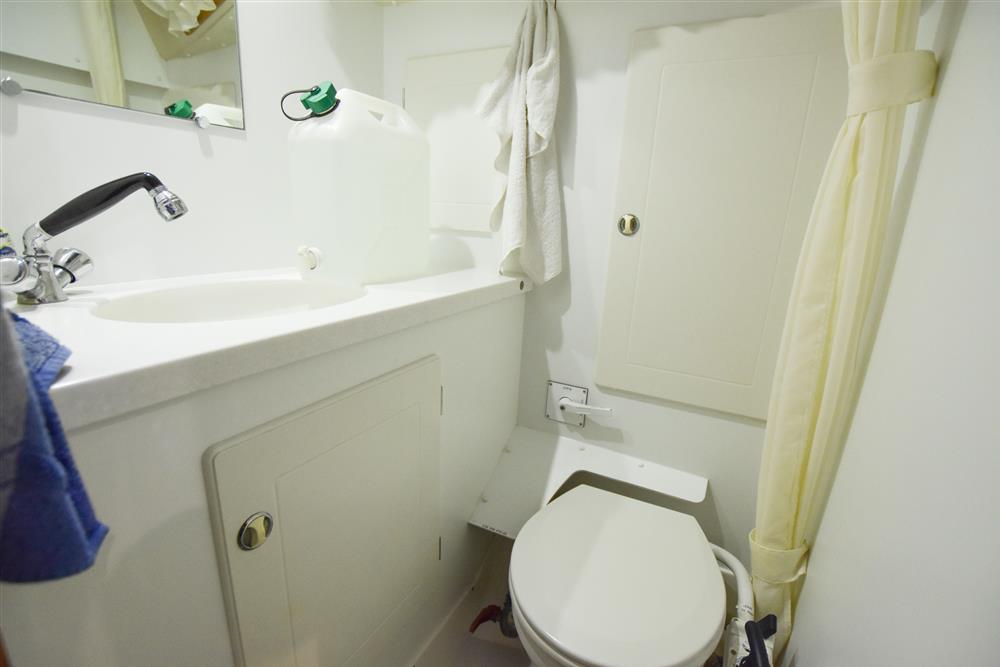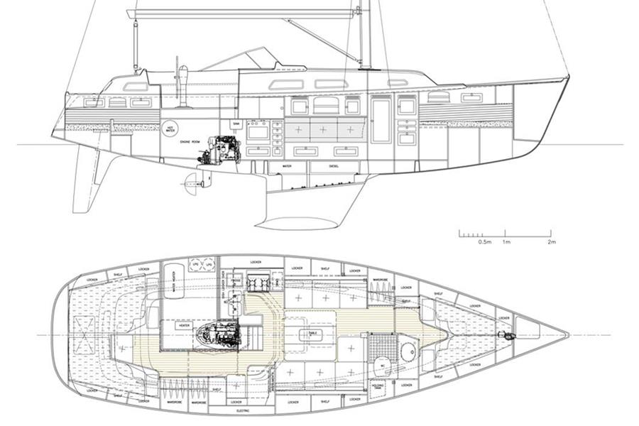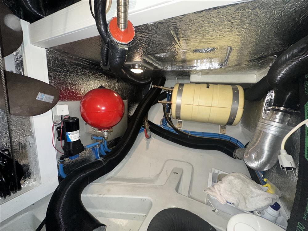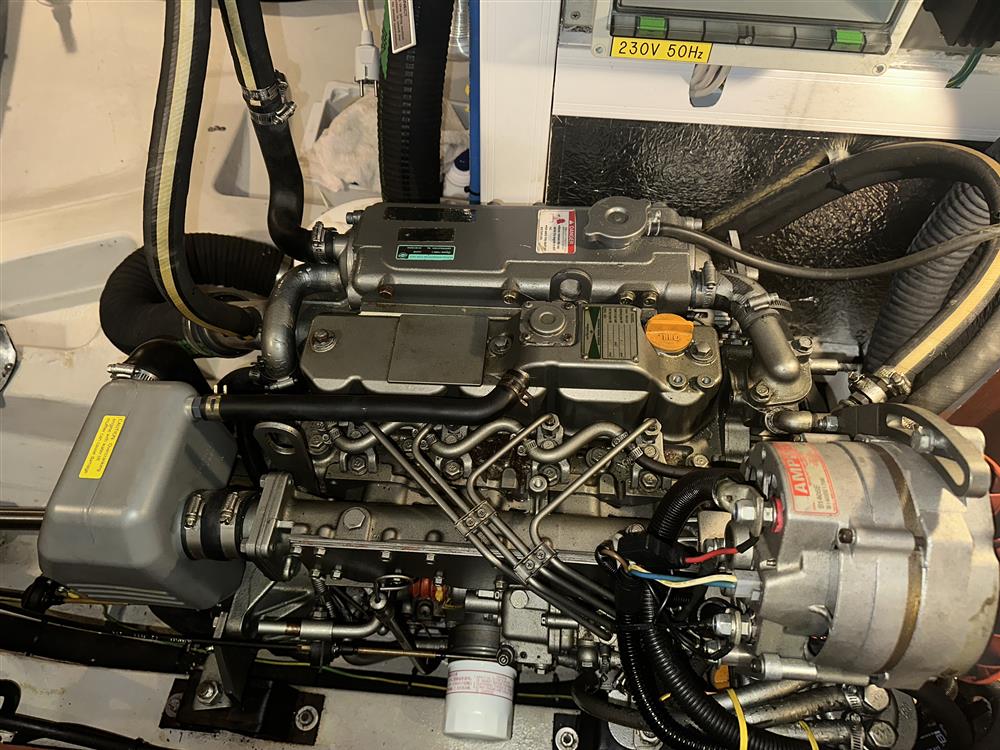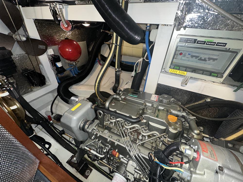 Located under the cockpit sole in an insulated and ventilated engine bay, is the Yanmar 4JH4E marine diesel engine. 54hp, four cylinders, naturally aspirated. Fresh water cooled via a heat exchanger. Shaft drive via a reduction gearbox (new 2013) to a folding propeller. Electric start. Single lever engine controls. Regularly serviced by the owner. Spared fixed three blade propeller. BOWTHRUSTER