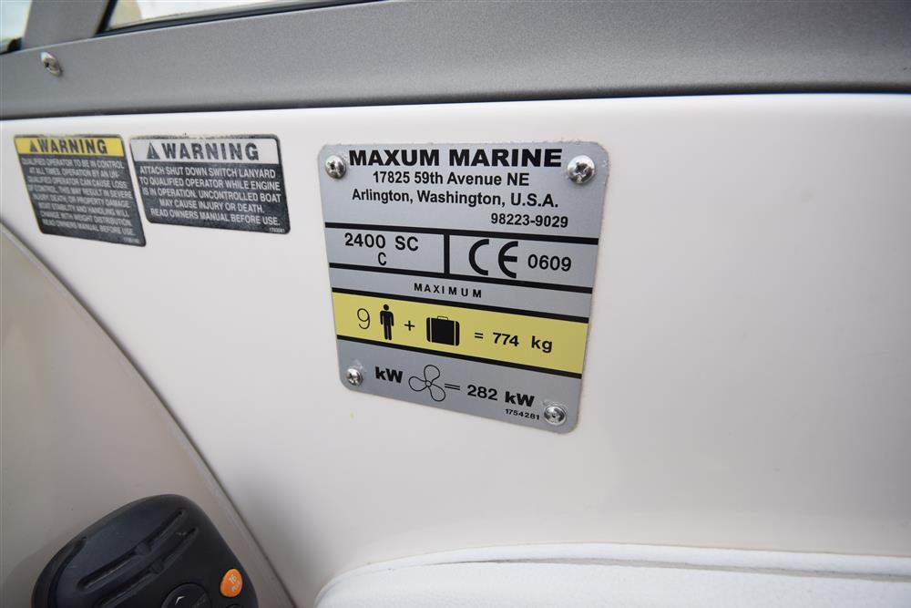 Built in 2007 by Maxum Marine, the 2400 SC3 has a GRP hull, deck and superstructure, finished in red and white gelcoat. The deep V planning hull provides reassuring grip and a comfortable ride in a variety of sea conditions.