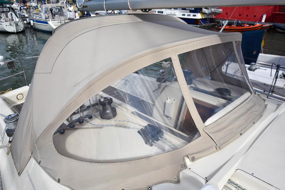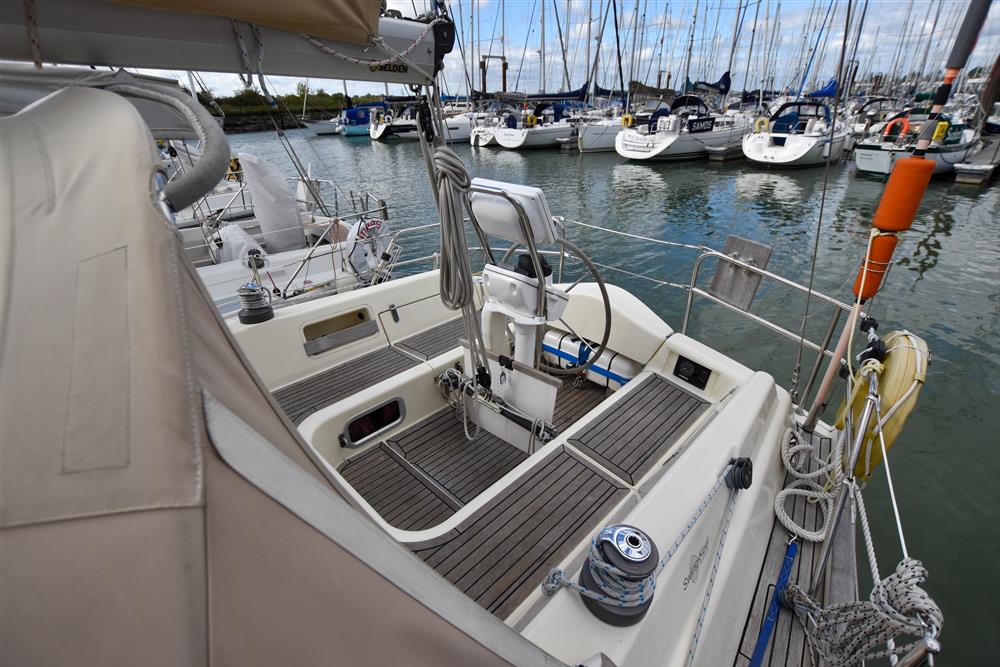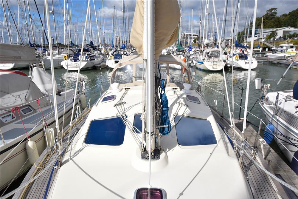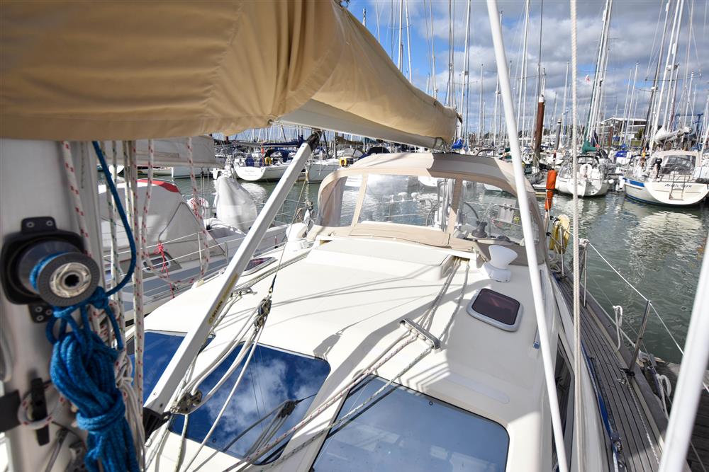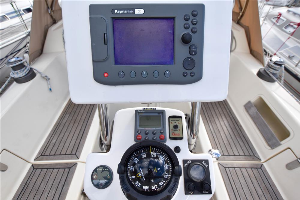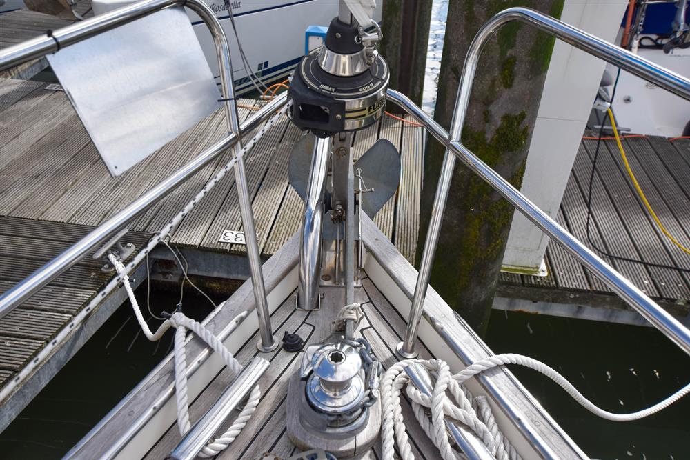 Masthead rigged Bermudan sloop (tall rig option). Deckstepped alloy mast and boom by Selden Spars. Stainless steel standing rigging (2022). Terylene running rigging (2022). Single line slab reefing mainsail with lazyjacks. Furlex headsail furling system. Lines led aft to cockpit. Two Lewmar 30 self-tailing sheet winches. Two Lewmar 46 self-tailing halyard winches. Lewmar 8 mast winch. Rod kicker. Removeable stainless-steel bowsprit. Extra 3 reef fitted. Mast mounted telescopic Selden pole.