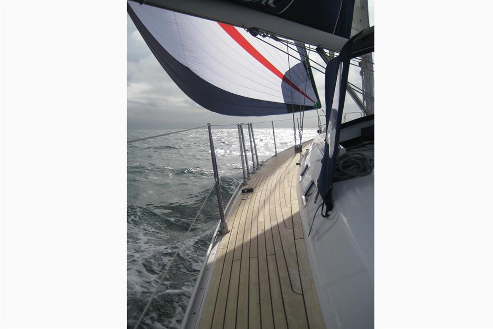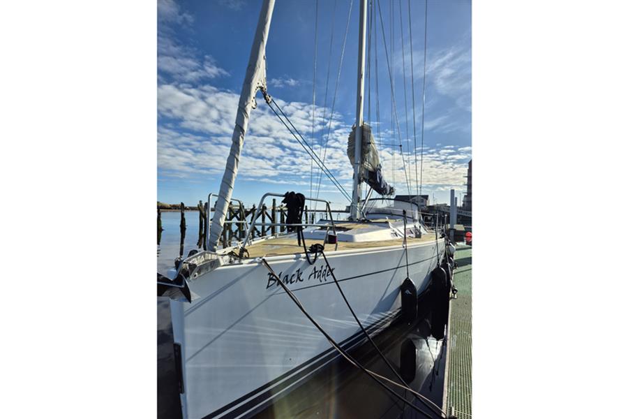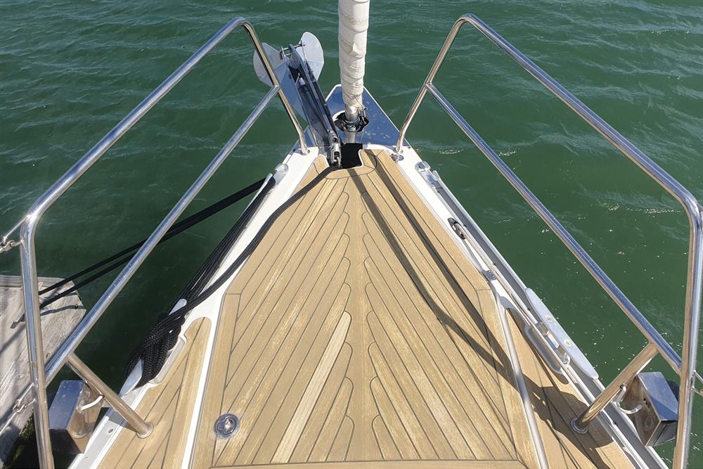 Fractional rigged bermudan sloop. Sparcraft silver anodised aluminium, deck stepped, double swept spreader mast and boom. Original stainless steel standing rigging, professionally checked in June 2023 with no recommendations required. Adjustable backstay tensioner. Terylene running rigging. Solid kicker. Self-tacking track on foredeck. Slab reefing mainsail with two reefs. Facnor headsail furling system fitted below deck with control line led aft. Halyards and control lines led aft to 10 Spinlock clutches. 2 x Lewmar 46 self-tailing halyard winches (the starboard winch is electric) on the coachroof. 2 x Lewmar 46 self-tailing sheet winches. Mast steps. Spinnaker deck gear. Adjustable backstay.