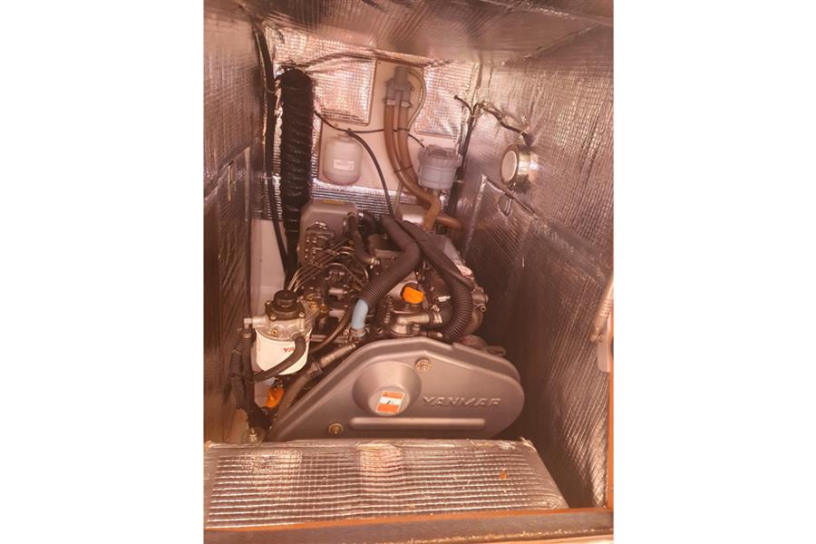 Yanmar 4JH4E, four cylinder, 55hp inboard diesel engine. Fresh water cooled via heat exchanger. Saildrive leg with Brunton Autoprop three blade feathering propeller (refurbished 2023). Two blade fixed propeller as a spare. 230 litre stainless steel fuel tank giving a range of approx. 600nm. Last serviced March 2023.
