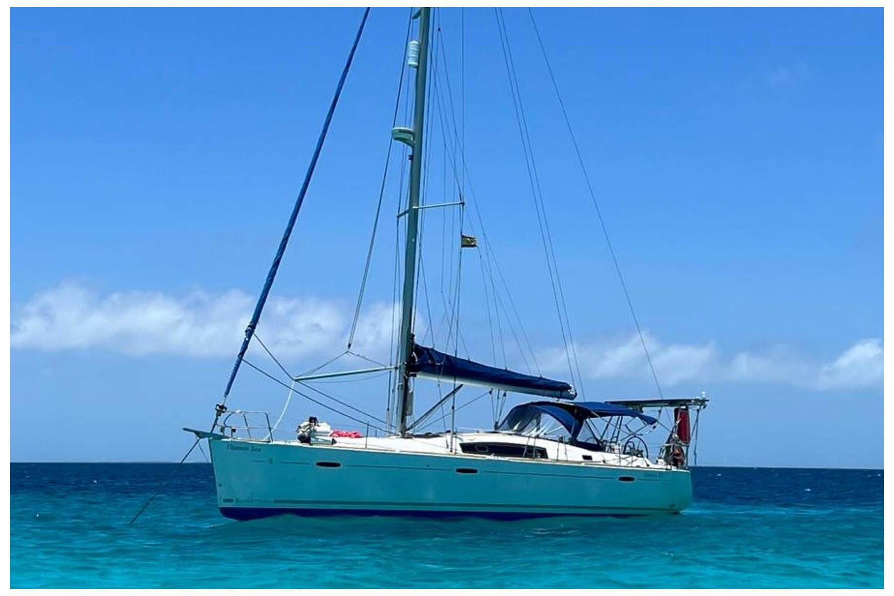Probably one of the best Beneteau 43s on the market at the moment. The Beneteau Oceanis 43 offers a class leading interior with lots of clever design features, ideal for comfortable cruising. Vitamin Sea is the sought after owner's cabin version, offering a very spacious saloon, two great sleeping cabins both with en-suite heads access, a generous galley and lots of useful storage for long term cruising. Presented in very good condition, her impressive inventory includes a comprehensive sail wardrobe, electric halyard winch, upgraded mainsail car system, new rigging and running rigging 2022, new seacocks 2020, chart plotter new 2021, hydrovane new 2020, water-maker new 2021, and dinghy and outboard new 2022. This boat also benefits from electric windlass, bow thruster, Raymarine navigation pack including autopilot, radar and AIS and a stainless steel aft frame with davits. Conveniently located in Grenada in the southern Caribbean.