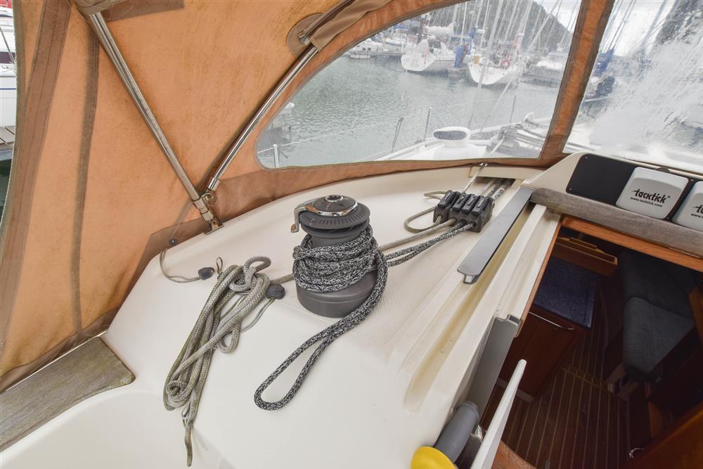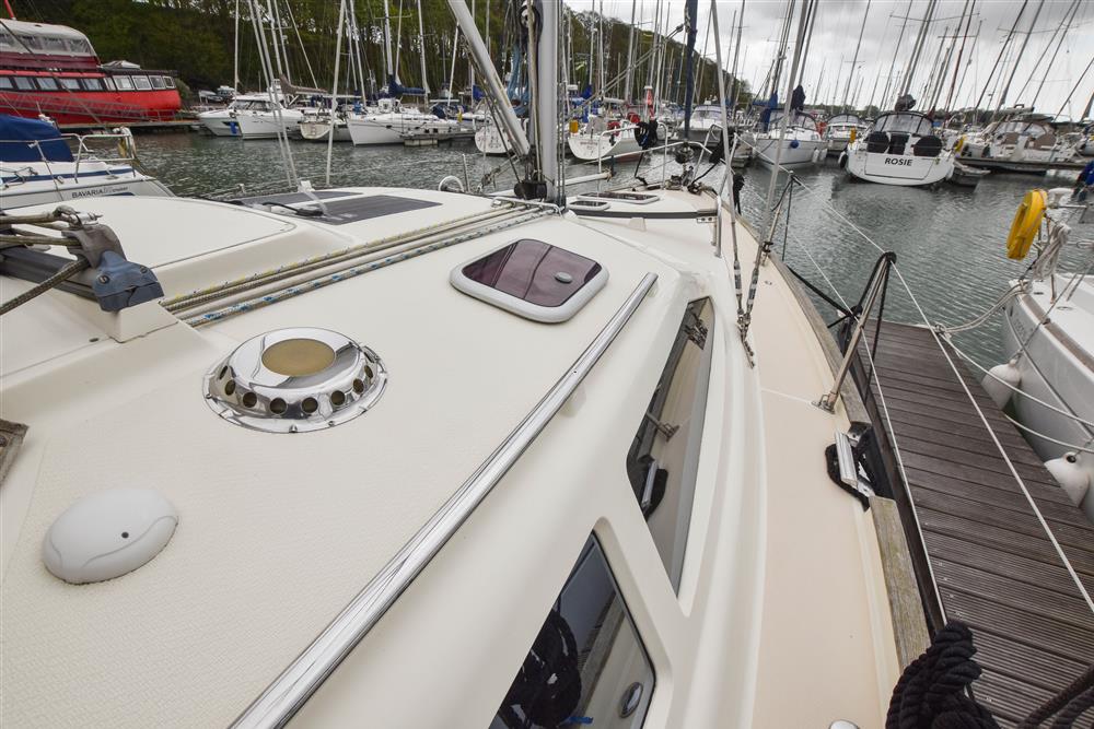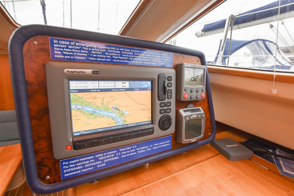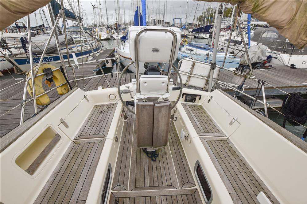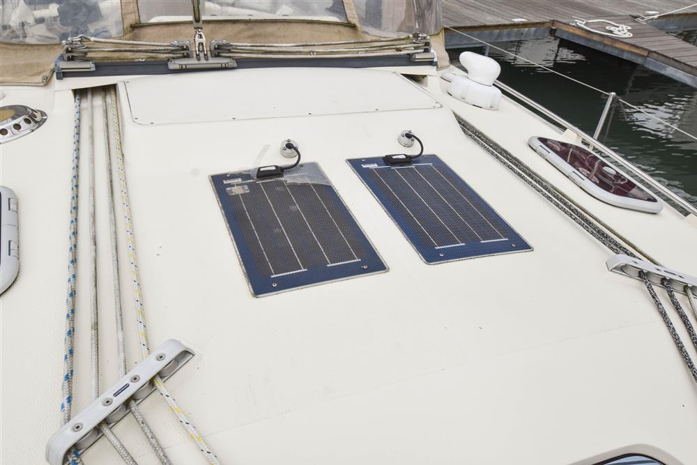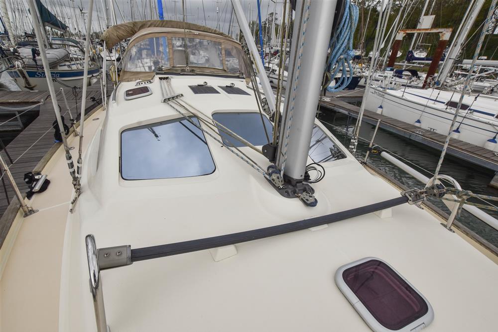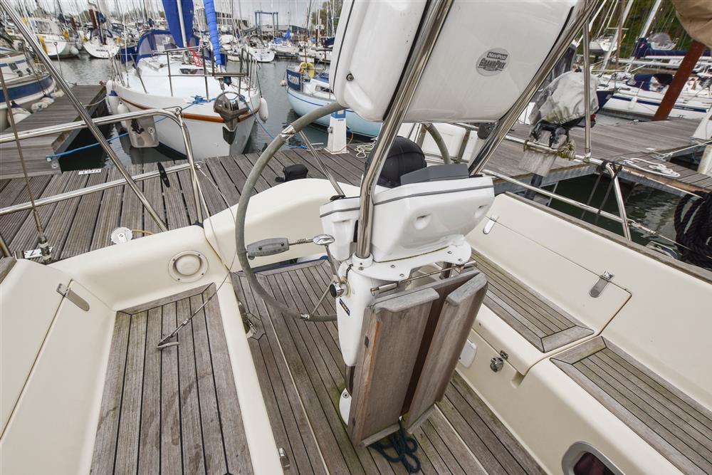 Fractionally rigged Bermudan sloop with the taller mast option. Self tacking jib. Deckstepped alloy mast and boom by Selden Spars (2010). Stainless steel standing rigging (2025). Terylene running rigging. Inmast furling. Furlex headsail furling system. Lines led aft to cockpit. One electric Lewmar 46 self-tailing halyard winch. One manual Lewmar 46 self-tailing halyard winch. Rod kicker. One Lewmar 8 mast winch. Selden whisker pole mounted on port foredeck.