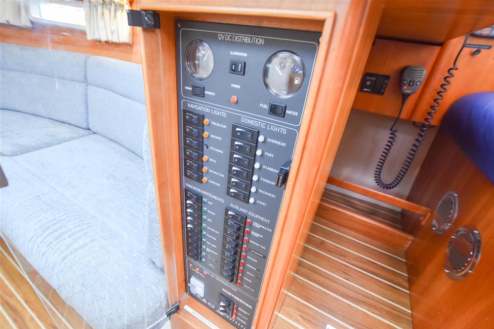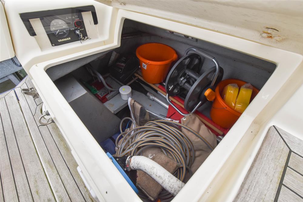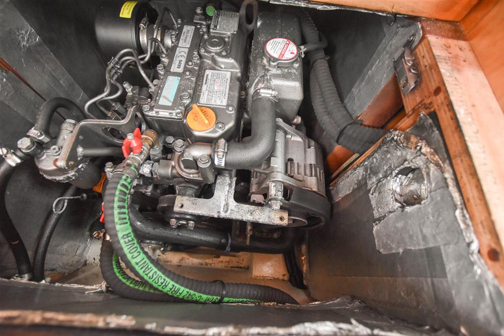 Located under the companionway stairs in a ventilated and insulated engine bay is the Yanmar 3YM30F marine diesel engine fitted in 2010. Three cylinders, 30hp, fresh water cooled via a heat exchanger. Shaft drive to a folding three bladed propeller. Single lever controls. Electric start. 182 litre plastic fuel tank. Vetus double oil filter system with pressure gauge. 969 engine hours. Engine serviced in Jan 2025. Engine seacock replaced in Feb 2025. Lewmar 3KW bowthruster.