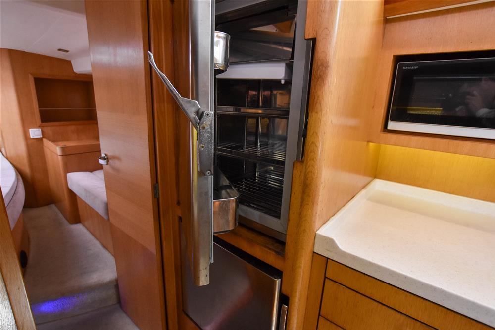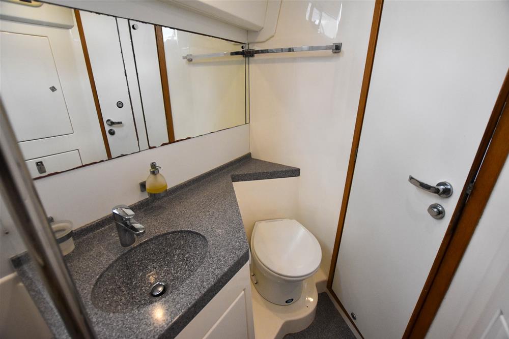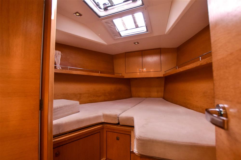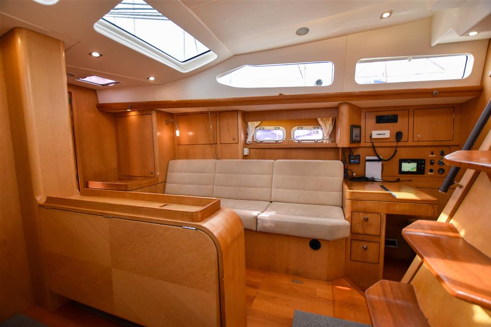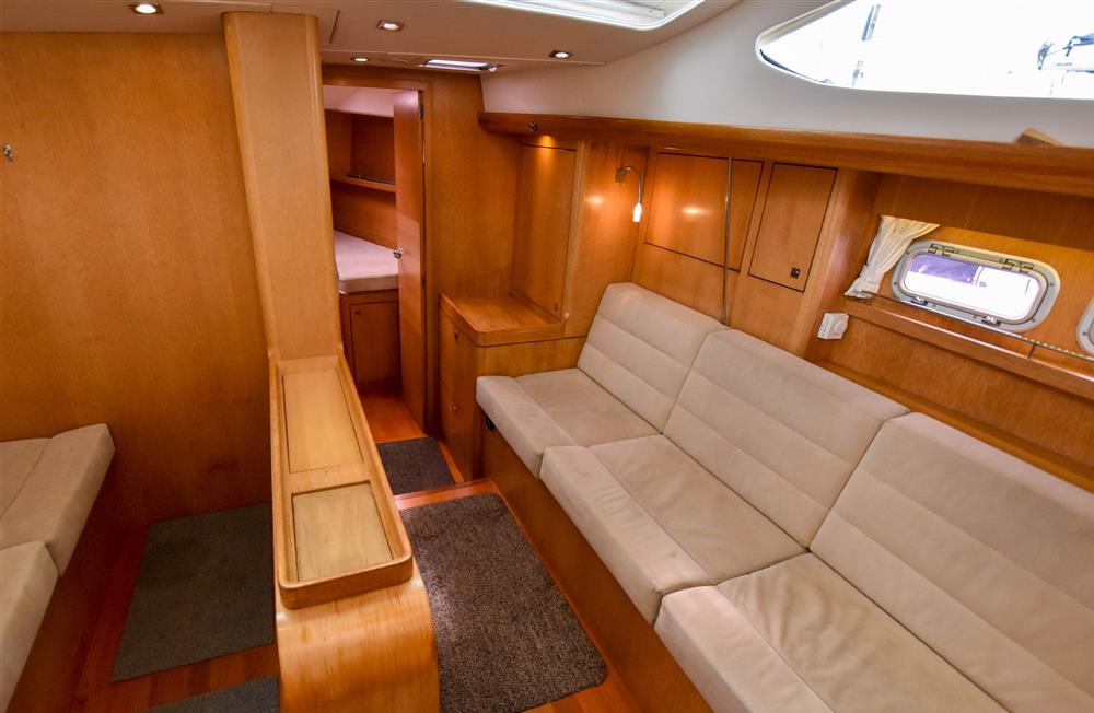 From Forward: Fore cabin with twin berths converting to a double with V berth infill/drop down step. Beige fabric upholstery. Hull ports both sides with large deck hatches. Blinds and screens to hatches. Hanging locker and under berth storage plus shelving and forward lockers. Separate central heating control. Doors to saloon and en-suite heads compartment. Forward heads with Jabsco electric toilet with holding tank. Moulded basin. Shower with curtain rail and electric pump out. Storage locker and large mirrors. Opposite the heads to starboard is a glasses locker, bottle drawer and spares drawer. The saloon has two long settee berths with lee cloths and plenty of storage lockers over. Beige Alcantara upholstery. Centreline saloon table with two large folding leaves and masses of bottle stowage. Four opening hull ports. Pull down Venetian blinds to coachroof windows plus blinds and screens to deck hatches. The forward facing chart table is to starboard. This has a good size chart table and is equipped with a B&G chart plotter, Racor fuel system alarm, Seafire fire suppression system, Fusion stereo, Simrad RD65 VHF radio, C Zone multi remote electronic control system, hand held VHF radio & Starlink system. The galley is to port of the companionway. This has a large stainless steel sink on the centreline, Sharp microwave oven, Levanto stainless steel cooker with three burners and oven, Corian worktop, Frigoboat stainless steel front loading fridge and separate freezer, plus multiple storage lockers and drawers. The aft cabin has a centreline double berth with drawer under. Easy chair to port with large locker and hanging lockers either side. To starboard is a vanity desk with seat. C Zone multi control system and Navtex. Large deck hatches with blinds and screens. Hull ports. The en-suite heads compartment is to starboard and is equipped with a Jabsco electric marine toilet with holding tank, moulded basin and shower with curved Perspex shower screen.