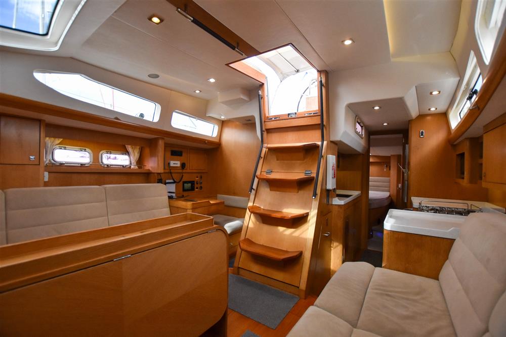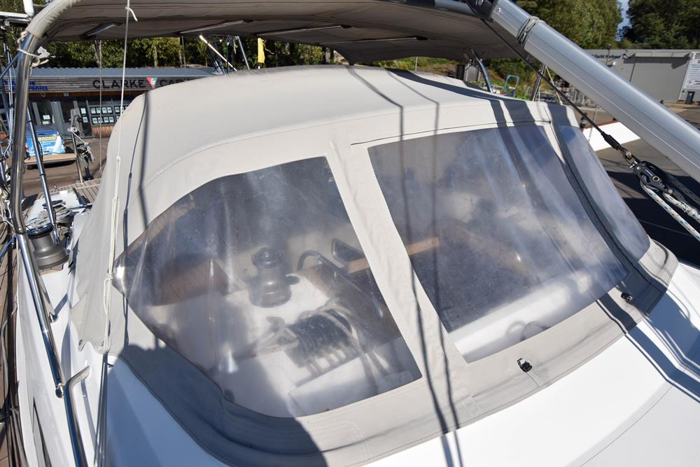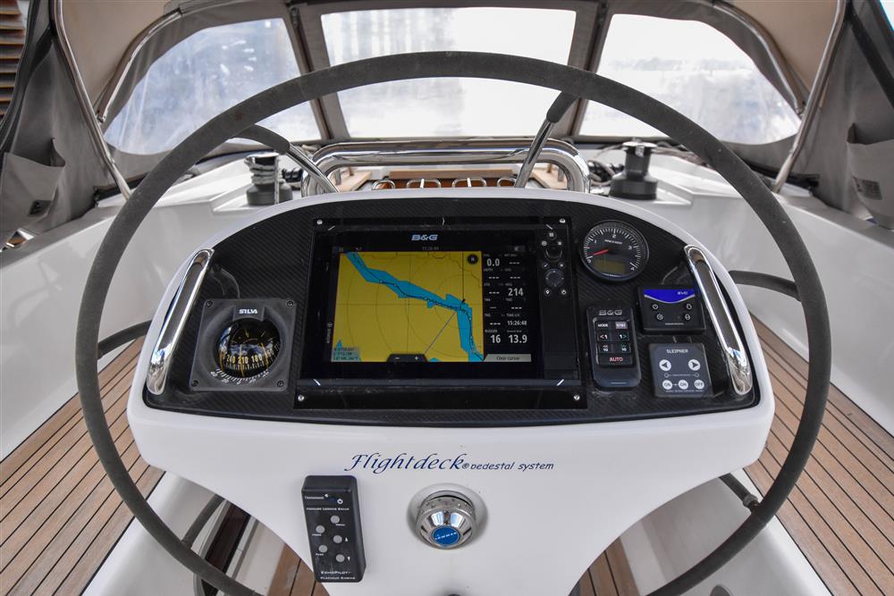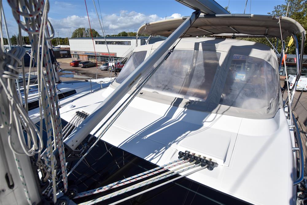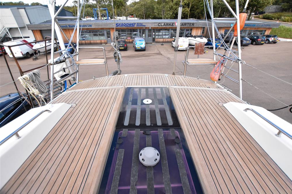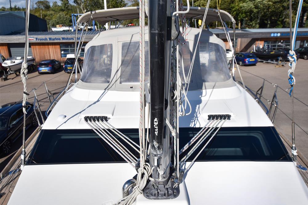 Fractional Bermudan sloop rig, 2012. Deck stepped, double spreader rig by Selden in 2012. Stainless steel standing rigging, 2024 with backstay tensioner. Slab reefing to mainsail, led aft to cockpit with stackpack. Terylene and Spectra halyards and sheets, 2021/4. Furlex 300S headsail furling system. Carbon spinnaker pole with up mast stowage. Rod kicker. Towing genoa cars. Lewmar 50ST primary winches. Lewmar 45ST secondary sheet winches. Lewmar 45ST coachroof control line winches, the starboard one is electric.