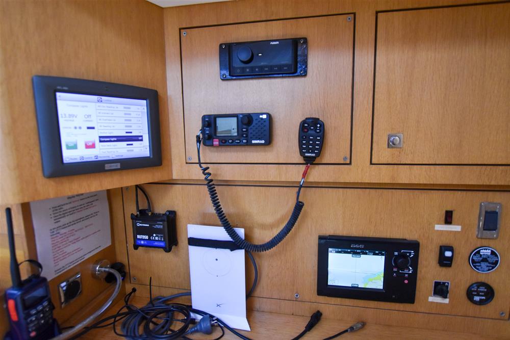 5 domestic 12V batteries, 2022/3. Engine start battery 2022. Two bow thruster/windlass batteries, 2012. Charging via engine alternator, shore power charger, solar panels and wind generator. CZONE electrical control system. 240V shore power system with battery charger, sockets throughout boat, immersion heater and inverter.