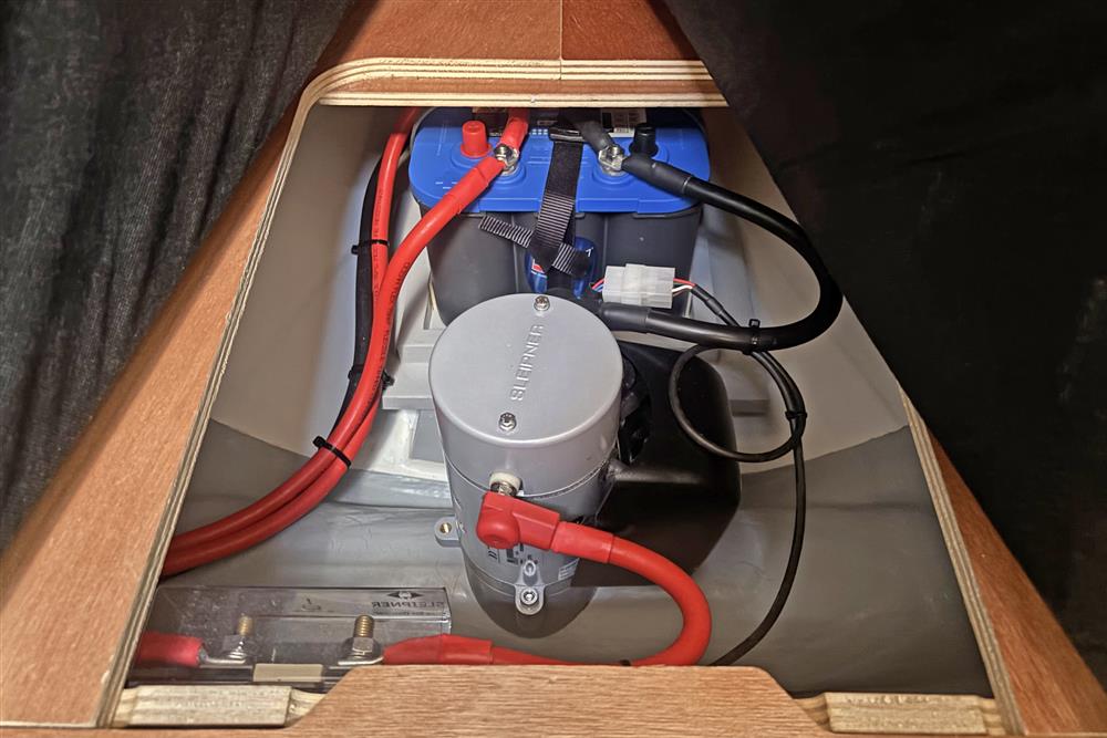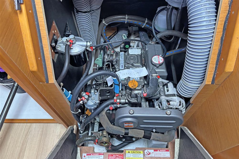Located behind the companionway stairs in a vented and insulted engine bay, is the Yanmar 3YM20 marine diesel engine. Three cylinders, 21hp, naturally aspirated. Freshwater cooled via a heat exchanger. Single lever controls. Electric start. Shaft drive to a Darglow three-blade feathering propeller. 130 litre plastic fuel tank. Annually serviced. Approximately 240 hours on the engine. SIDE-POWER BOWTHRUSTER.