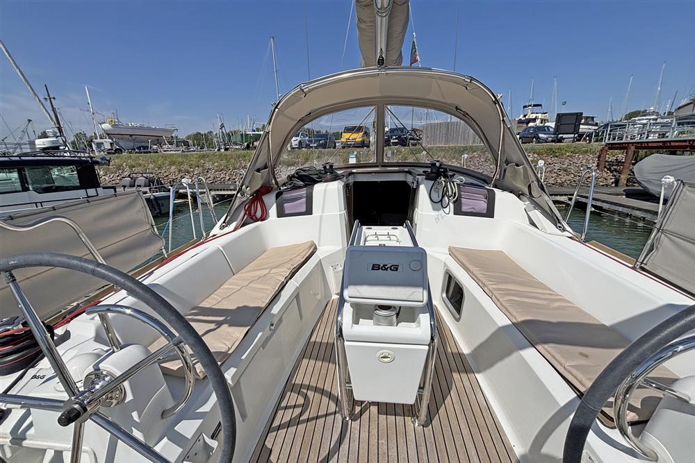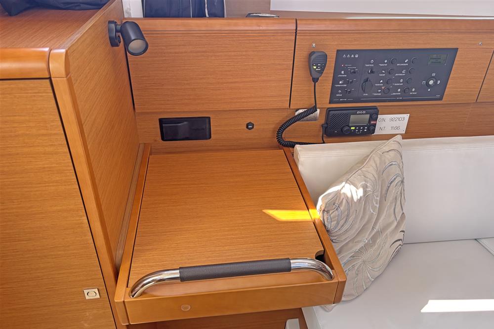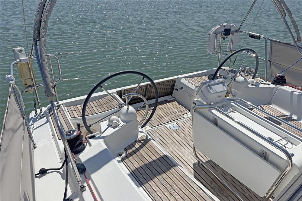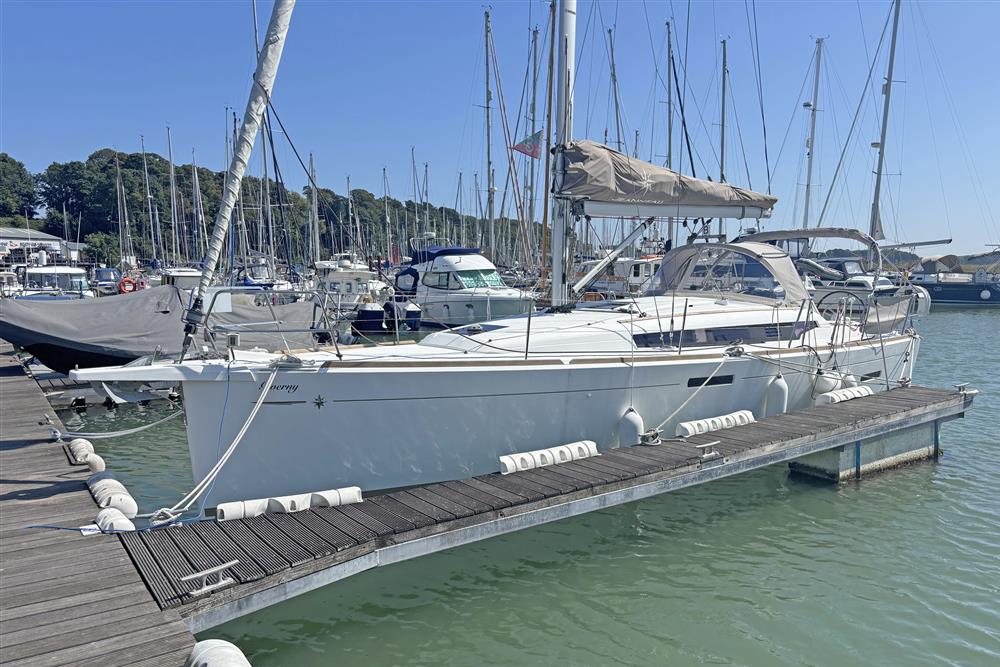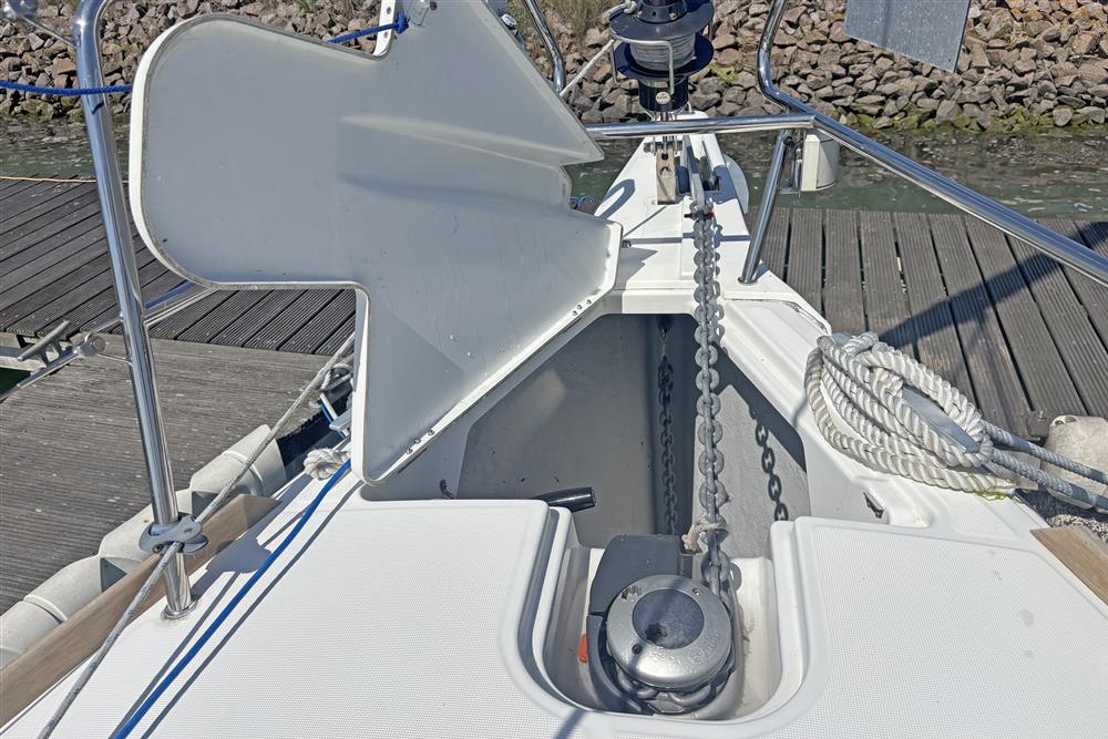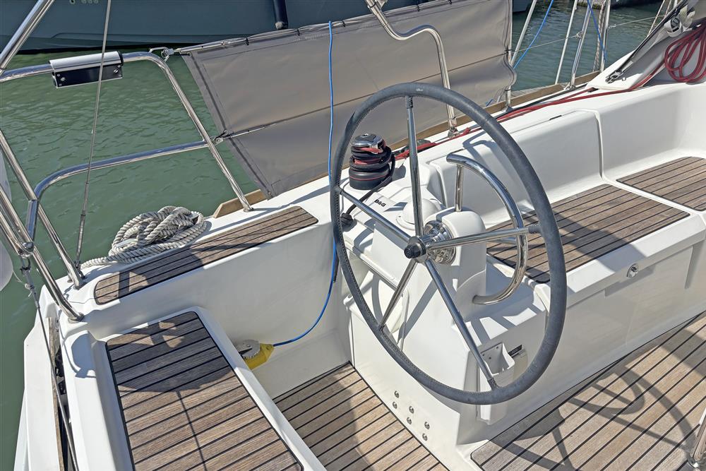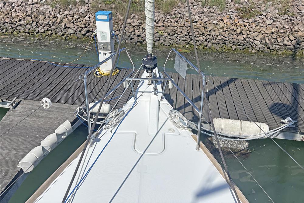 Fractionally rigged Bermudan sloop. Silver anodised aluminium mast and boom. Stainless steel standing rigging with double backstays (2015). Terylene running rigging (2015) with Dyneema main and genoa halyards, all led aft to cockpit or helmsman. Two Harken 40 self-tailing primary winches. Two Harken 35 self-tailing secondary winches. Harken genoa tracks (adjustable cars from cockpit) and main sheet traveller on coachroof. Spinlock jammers. Mainsheet traveller. Single line slab reefing to mainsail and head sail furling system. GRP bowsprit. Selden rod kicker. Spinnaker deck fittings.