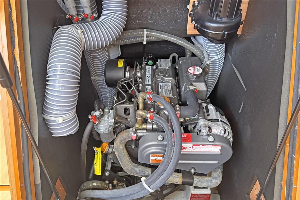Located behind the companionway steps in a vented and soundproofed compartment, is the Yanmar 3YM30 marine diesel engine. 29hp. Three cylinders. Fresh water cooled via a heat exchanger. Saildrive to a three bladed Bruntons Autoprop propeller. Original saildrive diaphragm. Single lever engine controls. Approximately 92 hours on the engine. Spare 3 bladed fixed propeller. Rope cutter. BOWTHRUSTER.