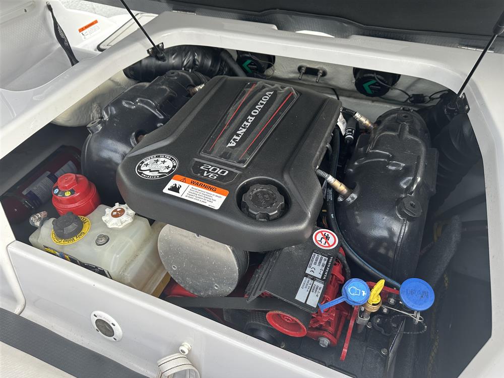 Single Volvo Penta V6 200hp petrol inboard engine (2018) with Volvo Penta outdrive. 3 bladed stainless steel prop. 91l fuel tank. Single lever engine control. Top speed in excess of 40 knots.