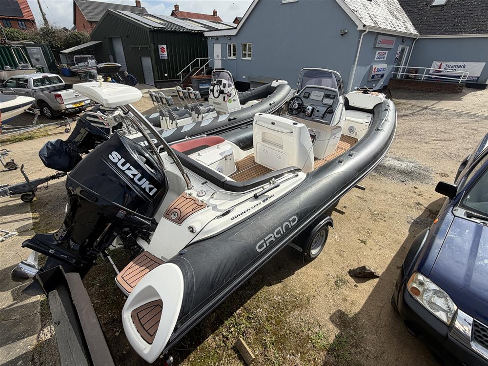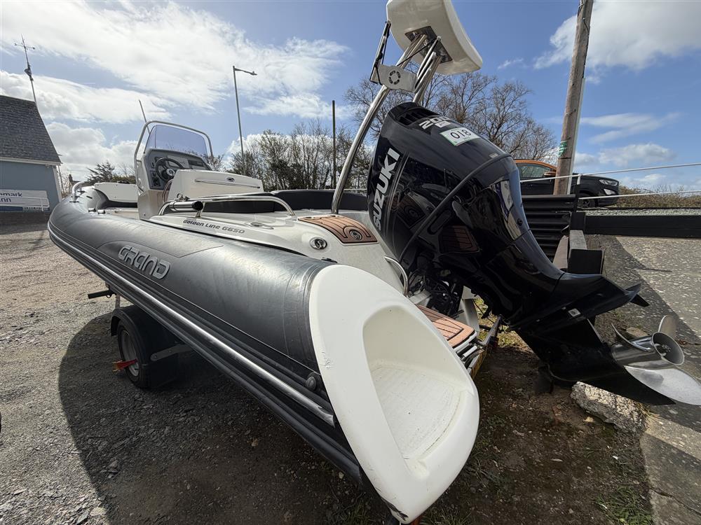 A well presented Grand 650 Golden Line, fitted with the preferred Suzuki 200hp four stroke outboard offering outstanding performance, comfort and handling. This example has been lightly used, well maintained and represents an excellent opportunity to acquire a highly capable family RIB with quality build, stylish design and reassuring sea keeping. Early viewing is highly recommended.