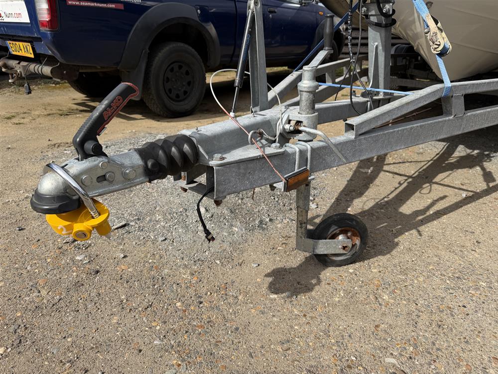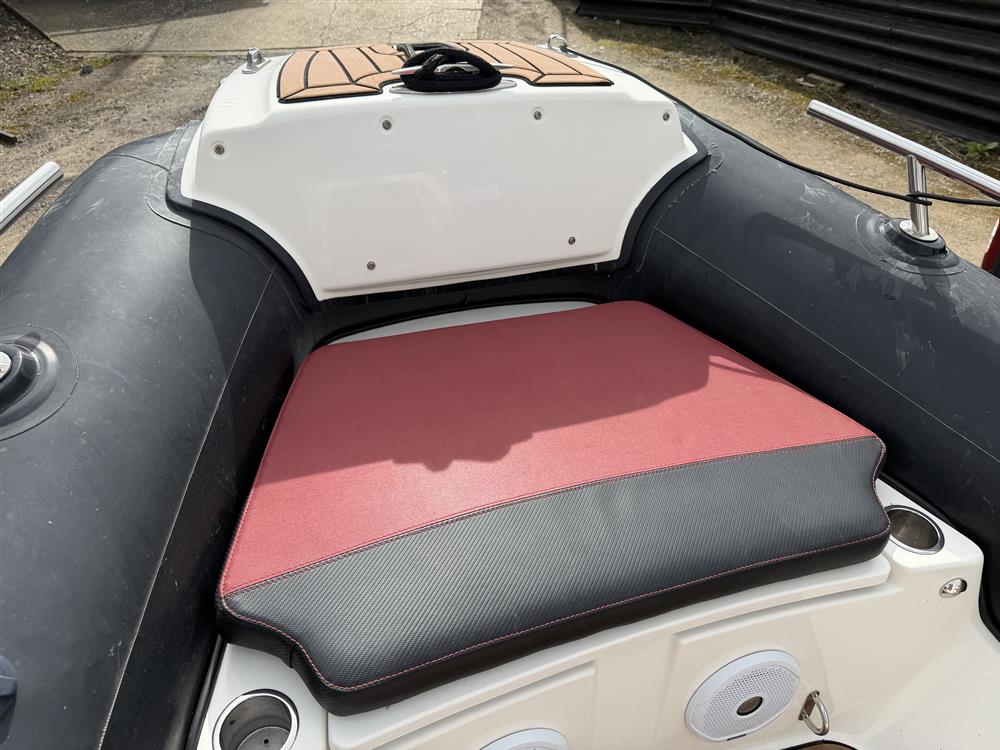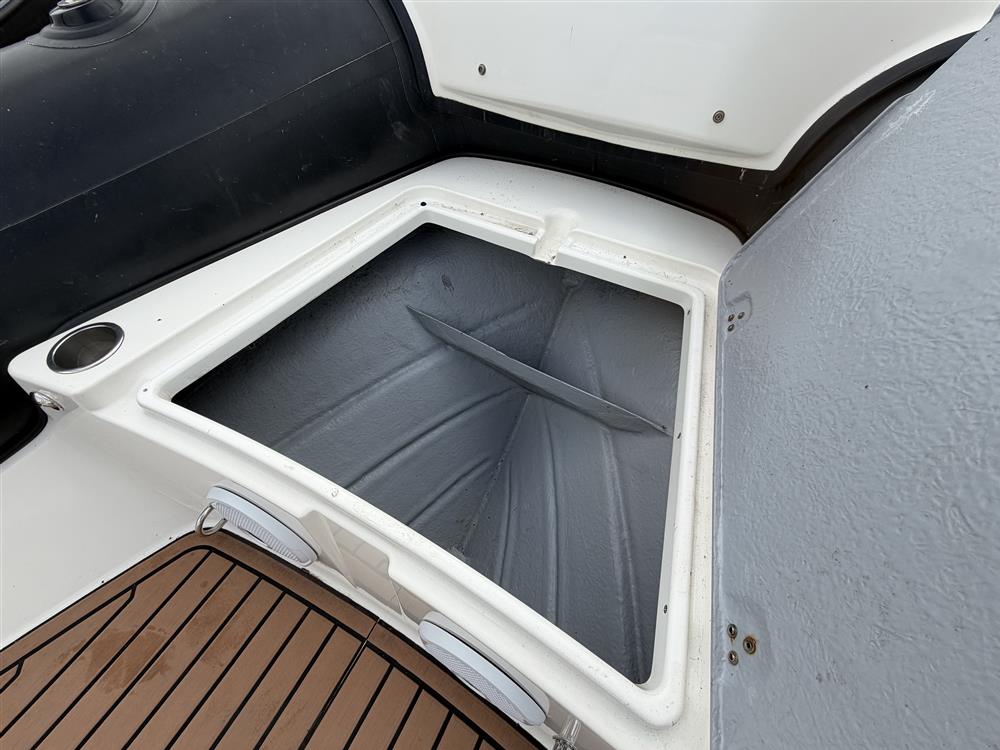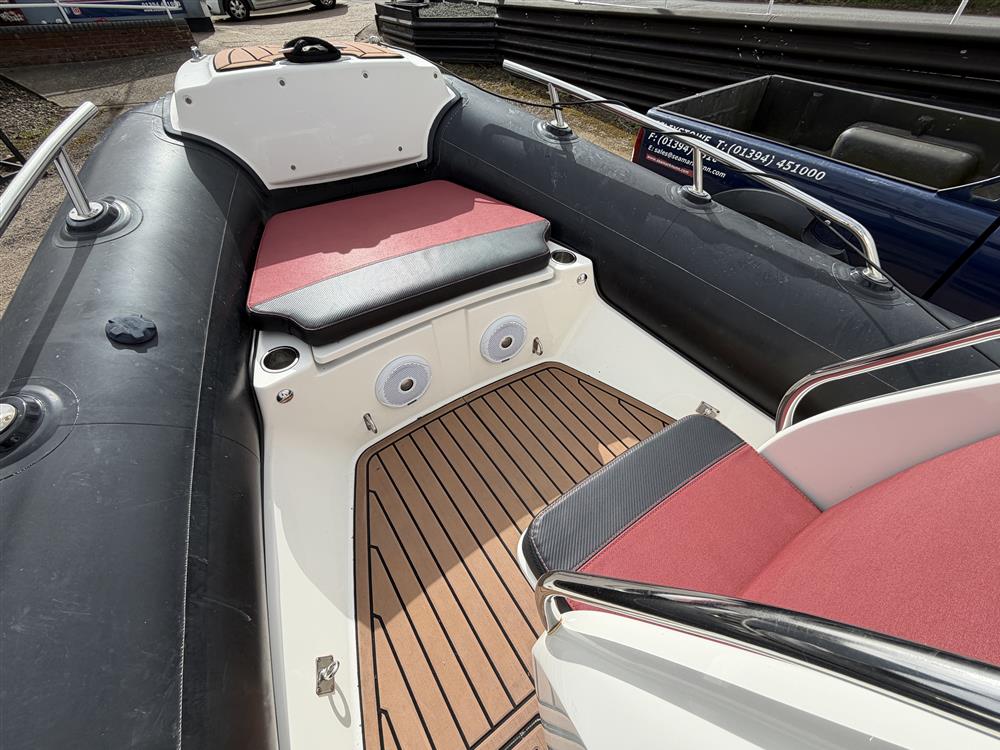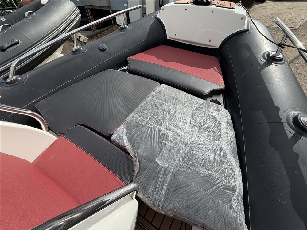 Built by Grand Boats, 2020. White GRP deep V hull with black ORCA Hypalon multi chamber tubes. Self draining deck. SeaDek laid floor. Under seat, bow and console storage lockers. Dual console with windscreen and stainless handrail. Category C RIB.