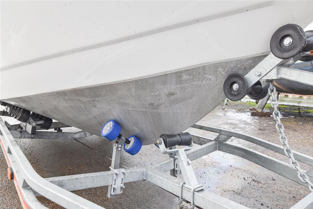 SBS galvanised single axel road trailer with a winch, roller, wheel clamp and a Boatcatch system.
