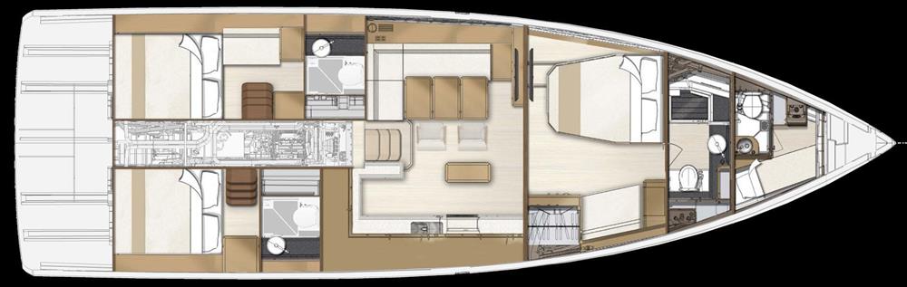 The astounding Jeanneau Yacht 55 is a market disrupter with her very clever design. She is a real owners yacht with the forward 60% of the interior dedicated to the owner and in addition there are two separate en-suite guest cabins. The exterior has two cockpits and four sun bathing areas that give more space than a catamaran of the same length. She also has the unique Jeanneau walk around decks. 110hp main engine with bow and stern thrusters for easy docking. A fabulous concept that can be customised extensively to individual tastes. Price shown is standard specification boat ex factory. Part exchange, low cost finance and VAT free exports all possible.